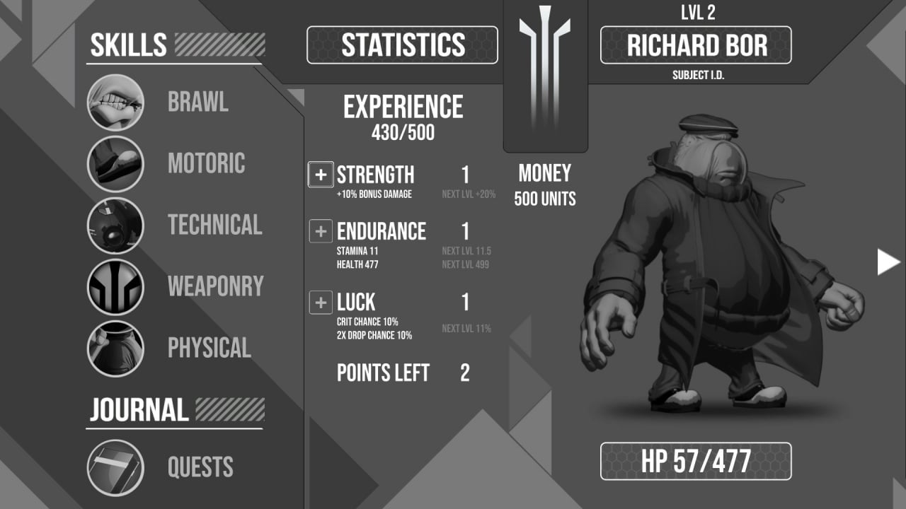 Сердце города - Цитадель. Это ваше главная цель, куда следует добраться. Это место пропаганды, террора и грубой силы. В основе игровых механик Tartapolis лежат ролевые аспекты и прокачка. Настраивайте героя, выбирайте ветки навыков, получайте доступ к гаджетам и смешивайте вещества. Получая новые способности, исследуйте ранее открытые локации, чтобы получить доступ к скрытым помещениям. Почувствуйте себя настоящим детективом!