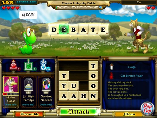 Игровой процесс BookWorm Adventures Volume 2 можно описать как смесь классической настольной Балды с ролевыми элементами. Оружие составляет из рандомных фраз, из которых вам потребуется сопоставить реальное слово. Бои представлены пошаговой механикой. Нажмите кнопку Атака, чтобы нанести врагу урон. Раунд считается пройденным, если вы сможете открыть поле из слова, состоящего из 16 клеток. Бонусами выступают яркие буквы. Они могут усиливать атаку, либо отравлять соперника. Побеждайте ряд обычных противников, чтобы получить доступ к могущественному боссу. Доступен инвентарь и прокачка. Герои, вступающие в партию, выступают в качестве усилений. Например, Чеширский кот снимает проклятия, а Матушка Гусыня каждые 4 хода дает лечебную бутылочку. Сюжет отличается огромным количеством юмора и геймплей представлен нелепыми врагами: говорящие тарелки с кашей, кровожадные поросята, папа-медведь и многие другие. Все противники разговорчивые и комментируют происходящее, а иногда в открытую издеваются над главным героем.