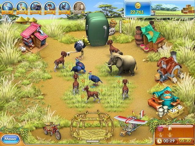 Farm Frenzy 3: Madagascar сочетает в себе симулятор фермы и тайм-менеджмент. В данной версии все животные – новые. Появились цесарки, буйволы, страусы и слоны. Их надо разводить, а произведенную ими продукцию – перерабатывать в товары на продажу. Производством одной еды дело не ограничивается. Кроме тортов и прочих вкусностей необходимо выпускать сувениры, костюмы и ювелирные изделия. Цель игры состоит в том, чтобы заработать достаточно денег, очистить всю воду, купить лекарства для зверей и превратить находящийся в упадке участок в райское место. Как и раньше, имеется два режима. Можно последовательно проходить уровни в карьере или развлекаться в бесконечной игре. Всего здесь 90 этапов. Каждый из них нужно успеть завершить за определенное время. Постепенно становятся доступными различные рецепты и здания. Периодически на фермерские угодья пробираются орангутаны. Их надо ловить, иначе они будут разрушать здания, и красть созданий.