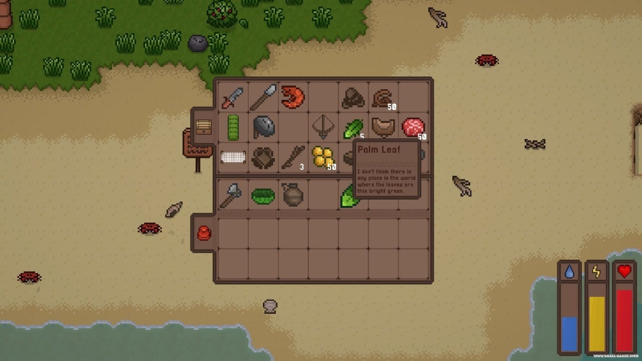 Island Survival Game v 0.2.1 Новая версия Полная версия Последняя Дата выхода 2020 Разработчик Thomassu Жанр RPG, Инди, Выживание Обновлено 26 января 2025, 07:22 Список изменений Island Survival Game переносит на необитаемый остров, где оказался безымянный человек. С собой у него ничего нет. Протагонисту придется абстрагироваться к здешним условиям, чтобы выжить. Необходимо собирать ресурсы, обустроить жилье, добыть еду и понять, как можно покинуть эту среду обитания. Присутствует смена дня и ночи, а также — погодных условий. Необходимо сделать все возможное, чтобы исследовать территорию и при этом остаться в живых.Страннику, блуждающему в песочнице Island Survival Game предстоит следующее: Следить за показателями жизнедеятельности — уровень сытости, жидкости, здоровья, задержки дыхания. Устроить охоту на животных — крабы, которых можно убить с одного удара. Дикие кабаны после первого удара будут бежать за героем. Они имеют больший запас здоровья. Также есть лемуры, которых можно встретить на дереве. Под водой можно охотиться на рыб, главное следить за шкалой выносливости, чтобы не умереть на дне океана. Принимать пищу — помимо мяса можно собирать ягоды. Кушать нужно ежедневно. Сделать оружие — можно сделать с помощью ресурсов — кирка, острый меч, лук с ядовитыми стрелами, пушка. Необходимо рубить деревья и камни, находить сундуки. Ходить по острову, исследуя его — берег, джунгли, пещеры и море. Собирать ветки, минералы, а также ставить ловушки. Все предметы находятся в инвентаре. Скачать торрент Скриншоты Показать больше Видео из игры Скачать Island Survival Game Тип релиза Пиратка (Таблетка: Не Требуется) Версия v 0.2.1 (Полная) Последняя Размер 18.37 МБ Интерфейс Английский Озвучка Отсутствует Скачать .torrent торрент файл Скачать БЕЗ торрента прямая ссылка через uTorria Системные требования ОС: XP, Vista, 7, 8, 10 Процессор: Dual Core 2.0 GHz Оперативная память: 1.5 ГБ Видеокарта: HD Graphics 4000 Песочница, Пиксельная графика