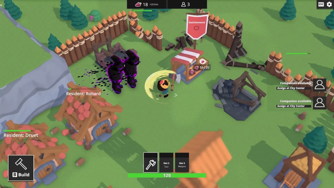 За территорией королевства поджидают опасности в виде диких животных или вражеских поселений. Добыв лут и полезные ископаемые, необходимо принести их в поселение, чтобы можно было воспользоваться материалами для постройки новых сооружений или прокачки экипировки. Доступен свободный режим, где нет никаких сложностей или ограничений по времени.