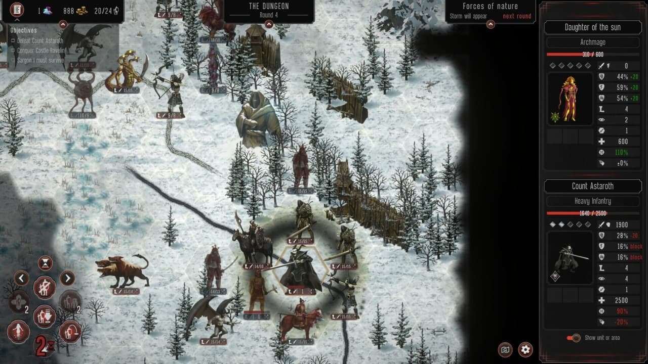 Присутствует динамическая смена погодных условий. Возникают дожди, молнии, бури, падают метеориты и т.п. Погода может стать как союзником, так и врагом. Все зависит лишь от рандома и щепотки удачи. Игровой процесс вдохновлен классикой жанра, такой как Heroes of Might and Magic, XCOM и т.д.