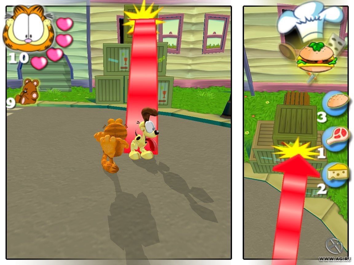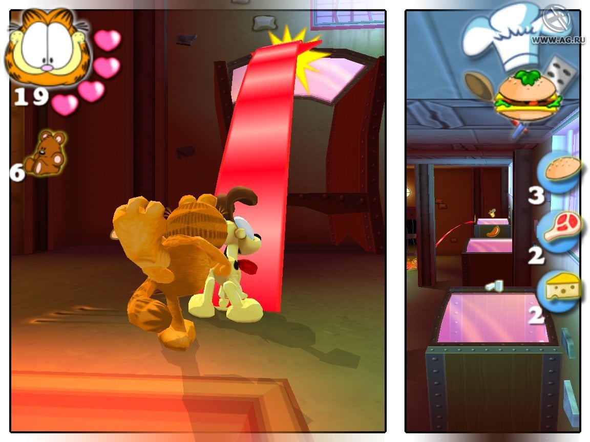 Garfield 2: Saving Arlene RUS Полная версия Последняя Дата выхода 2005 Разработчик Hip Interactive Europe Жанр Аркады Обновлено 20 мая 2025, 15:10 Список изменений Garfield 2: Saving Arlene предлагает отправиться в очередное приключение вместе со знакомым полосатым котом. После того как его подругу Арлин похитили, Гарфилд и его друг Оди отправляются на задание по спасению. Но все оказывается не так просто, ведь на их пути появляются многочисленные препятствия и сложности, через которые придется пройти. Это будут сады, различные отсеки канализации, помещения фабрики, задний двор и прочие места. Суть геймплея в "Гарфилд 2: Спасение Арлин" заключается в последовательном прохождении отведенных локаций с выполнением промежуточных задач. В большинстве случаев, это мелкие головоломки, для решения которых необходимо задействовать обоих персонажей. Например, на стартовой локации (сад на заднем дворе), необходимо открыть проход при помощи нажимной плиты. Но чтобы сделать это, на ней постоянно должен находиться один из героев. Так, Гарфилд встает на плиту, после чего подзывает к себе пса, и тот удерживает дверь открытой, пока кот продвигается дальше. В каждом сегменте на экране появляются текстовые вставки (чаще всего это мысли главного героя), объясняющие текущую задачу. Помимо преодоления препятствий и решения головоломок в игре присутствует элемент сбора предметов. Это дополнительная активность, которая формирует прогресс в конце каждого уровня. Персонаж собирает плюшевые игрушки, сладости и прочее. Не обошлось и без стычек с врагами (другими животными). Их нельзя устранить, но при этом можно оглушить на время, чтобы пробраться в другую часть локации. Скачать торрент Скриншоты Показать больше Видео из игры Скачать Garfield 2: Saving Arlene Тип релиза RePack от Yaroslav98 Версия (Полная) Последняя Размер 241 МБ Интерфейс Русский Озвучка Русская Особенности репака: Скачать .torrent торрент файл Скачать БЕЗ торрента прямая ссылка через uTorria Системные требования ОС: XP, Vista, 7, 8, 10 Процессор: Pentium III / Athlon (1.2 ГГц) Оперативная память: 256 МБ Видеокарта: 64 МБ Место на диске: 800 МБ Платформеры, От третьего лица