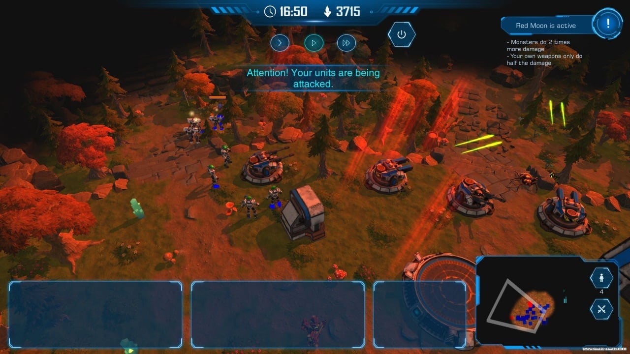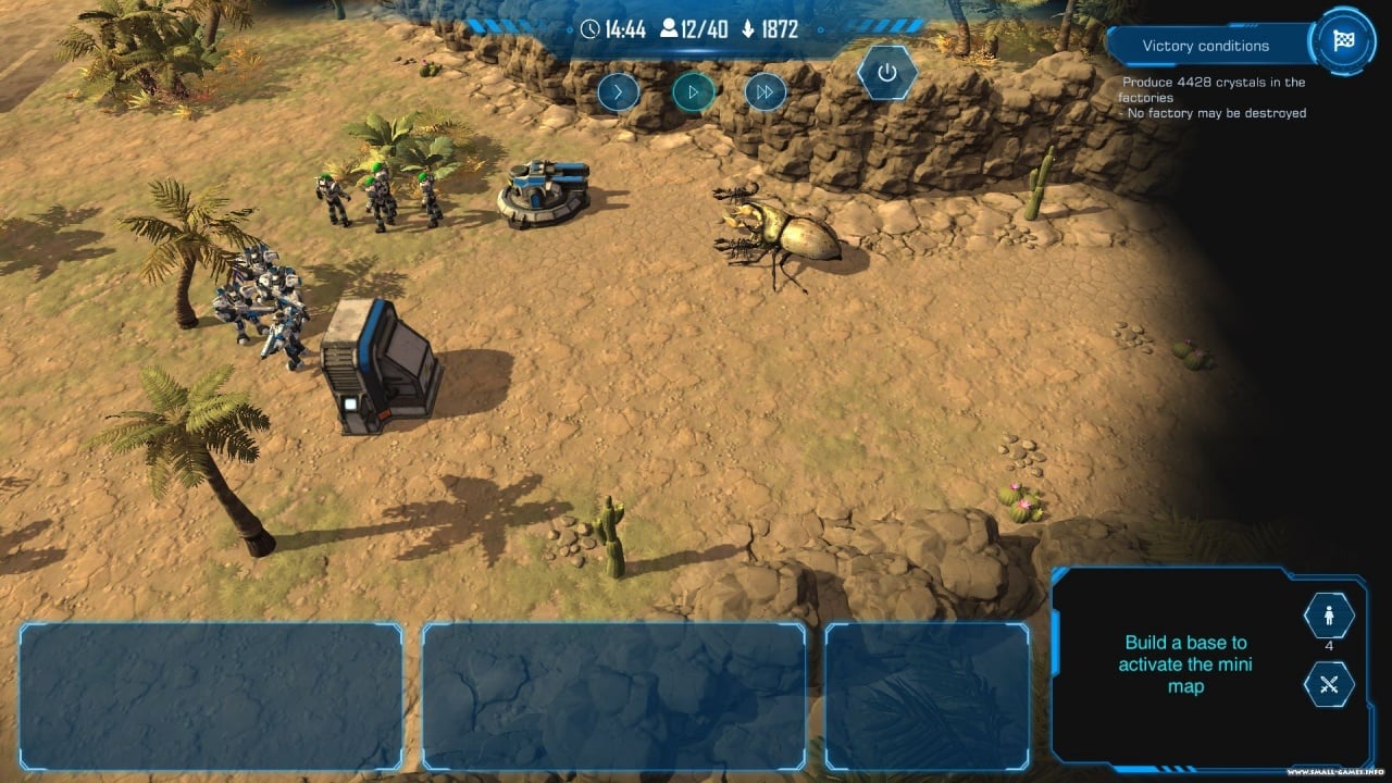 Геймеру предстоит добыть все редкие материалы, подсвеченные на карте. Странная субстанция будет привлекать жуков и монстров, а юзеру необходимо отбиваться от волн, чтобы продолжить прохождение. Для защиты представлена возможность строительства башен и баррикад. Мобильные отряды роботов, пехоты или техники помогут изучить окружение и сражаться с врагами. Если у пользователя остались ресурсы в конце миссии, то он способен инвестировать их в технологическую ветку, тем самым улучшив юнитов или постройки.