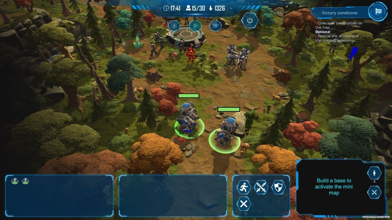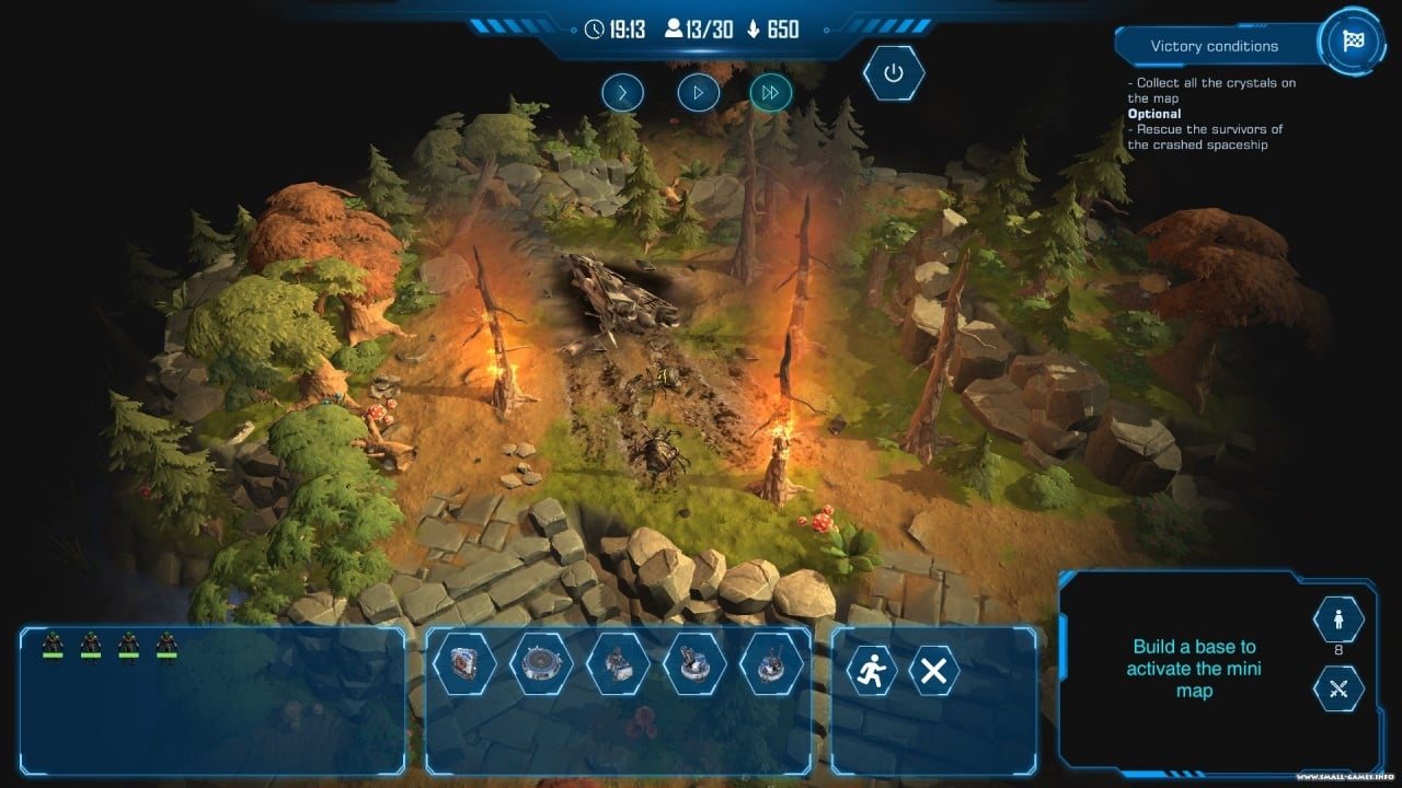 Игроку предстоит управлять собственной базой, увеличивать армию и заниматься экономикой. Вид происходит сверху, но некоторые мета на карте заняты туманом войны. Чтобы изучать область, потребуется перемещать воинов. На карте расположено множество залежей или одиночных кристаллов, если их разбить для добычи, то это привлечет местное население. Обитатели на Планете-27 недружелюбны и всегда будут атаковать тех, кто пытается уничтожить их единственную ценность – кристаллы.