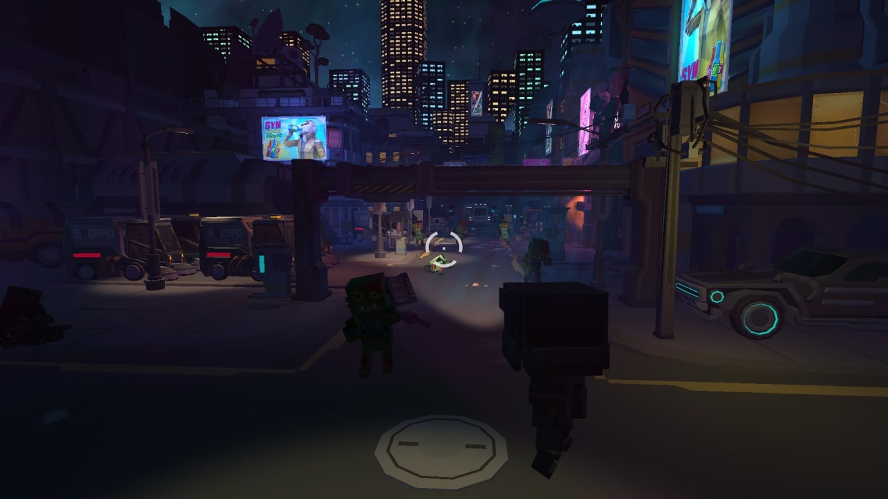 Minicraft Shooter – тайм-киллер в жанре шутера от третьего лица. Действия разворачиваются в постапокалиптическом городе, где большая часть населения превратилась в кровожадных зомби. Перестрелки и стычки с противниками случаются постоянно, а главному герою предстоит быть к ним готовым. Окружение выполнено в стиле киберпанка с неоновыми вывесками и футуристическими элементами.