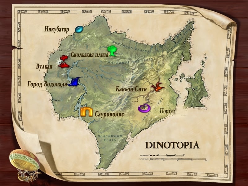Dinotopia – игра, созданная по мотивам рассказов писателя Джеймсома Герни, более известного за рубежом. Пользователь попадает в мир Динотопию, где человечество сосуществует с динозаврами. На континенте имеются редкие экземпляры и существа, способные дышать огнем и быть смертельно опасными для любой живности. Но все предпочитают жить в согласии и без взаимодействия между собой.