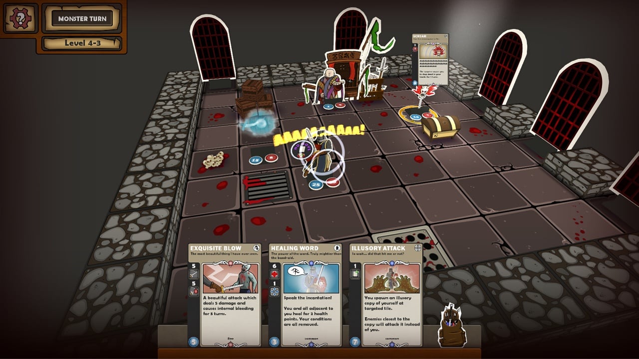 Card Dungeon Полная версия Последняя Дата выхода 2 июн. 2015 Разработчик Playtap Games Жанр RPG, Инди, Стратегии Смешанные на основе 41 обзоров в Steam 51% Обновлено 26 января 2025, 07:33 Список изменений Card Dungeon выделяется нестандартным визуальным стилем. Протагонист и враги в этой игре являются плоскими и вырезанными из картона фигурками. А различные объекты, вроде сундуков и стульев, выполнены в 3D. По сюжету Крестоносец отправился в путешествие. Когда он вернулся домой, то увидел, что там все заполонили существа Пустоты. После этого рыцарь захотел очистить родину от нечестивых существ. Это изометрический карточный рогалик. Камеру в нём позволяют вращать. В Card Dungeon действие разворачивается в подземельях. При каждом новом забеге данжи генерируются случайным образом. Всё в игре происходит пошагово. Доступен только один герой. Персонаж может перемещаться в шести направлениях и применять карточки. Они могут накладывать баффы и дебаффы, включать телепортацию, восстанавливать здоровье, отключать ловушки, наносить противникам разный урон, служить экипировкой и т. п. Всего в игре их 1000 разновидностей. Составлять колоды в этом тайтле не нужно. Однако у персонажа есть всего три слота под атакующие предметы. От убитых недругов на полу остаются кровавые пятна и лут. Снаряжение можно подбирать и заменять. Карты после неоднократного применения теряют прочность. Сначала они становятся потрепанными, а затем исчезают. Восстановить их нельзя, но можно найти на локации замену (или забрать её у поверженных недругов). Скачать торрент Скриншоты Показать больше Видео из игры Скачать Card Dungeon Тип релиза Пиратка (Таблетка: Вшита) Версия (Полная) Последняя Размер 150.5 МБ Интерфейс Английский Озвучка Отсутствует Установка: Скачать .torrent торрент файл Скачать БЕЗ торрента прямая ссылка через uTorria Системные требования ОС: Windows XP, 7, 8, 10 Оперативная память: 2 GB Место на диске: 600 МБ Карточная игра