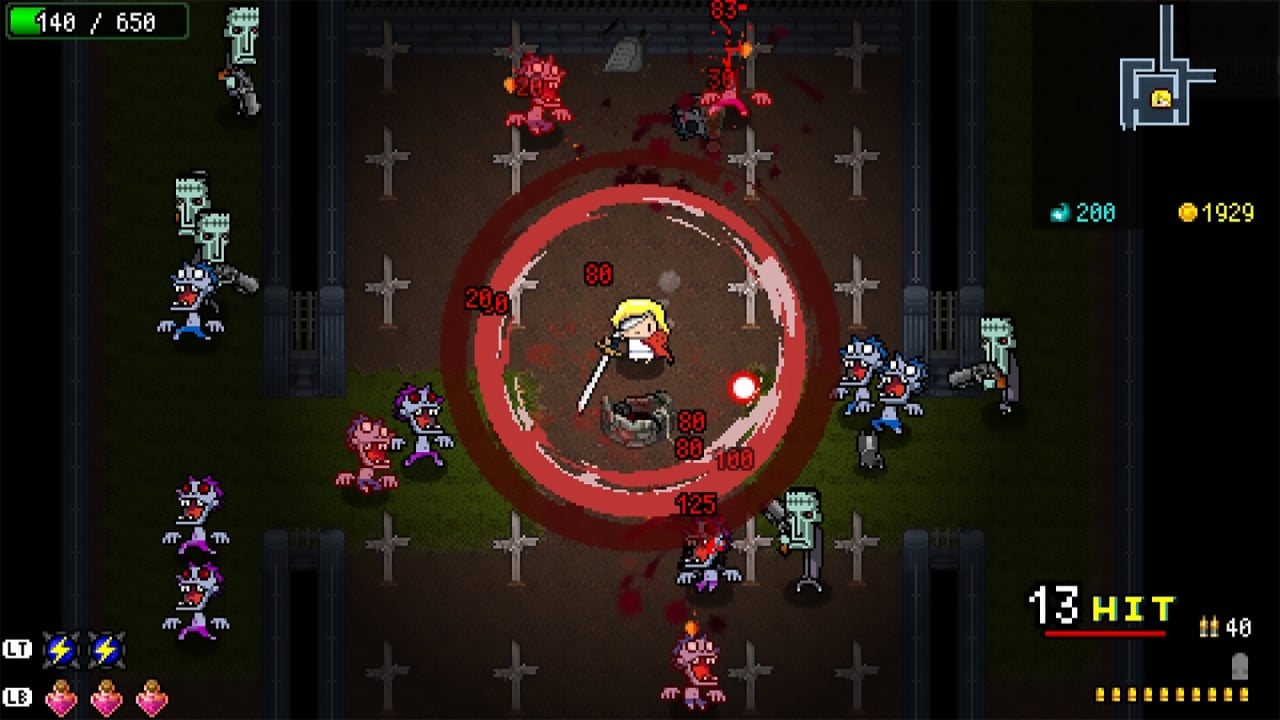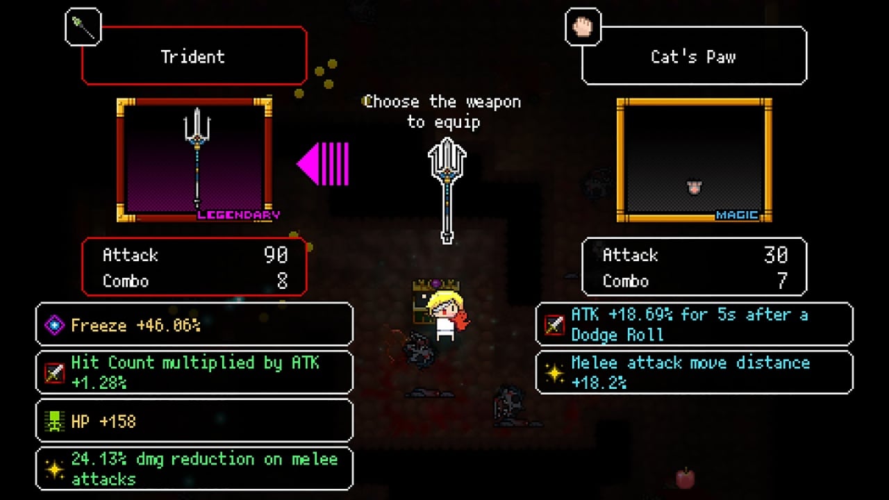 Устраняя противников и открывая сокровищницы, геймер наткнется на артефакты, изучит различные навыки и доберется до редкого оружия. В подземелье существует множество монстров мини-боссов и основных противников со слабыми и сильными сторонами. Ударяя оппонентов, от них разбрызгивается пиксельная кровь, а смерти сопровождаются отдельными анимациями. Прохождение нелинейное, всё зависит от выбранного маршрута. Пользователь способен добраться до отличающихся концовок.