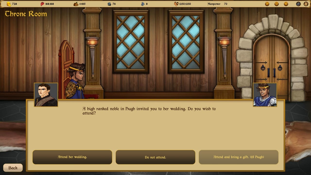 - Расширение границ и увеличение популярности. Установка торговых отношений, вассальной зависимости и союзов поможет обеспечить помощью со стороны других королей.
