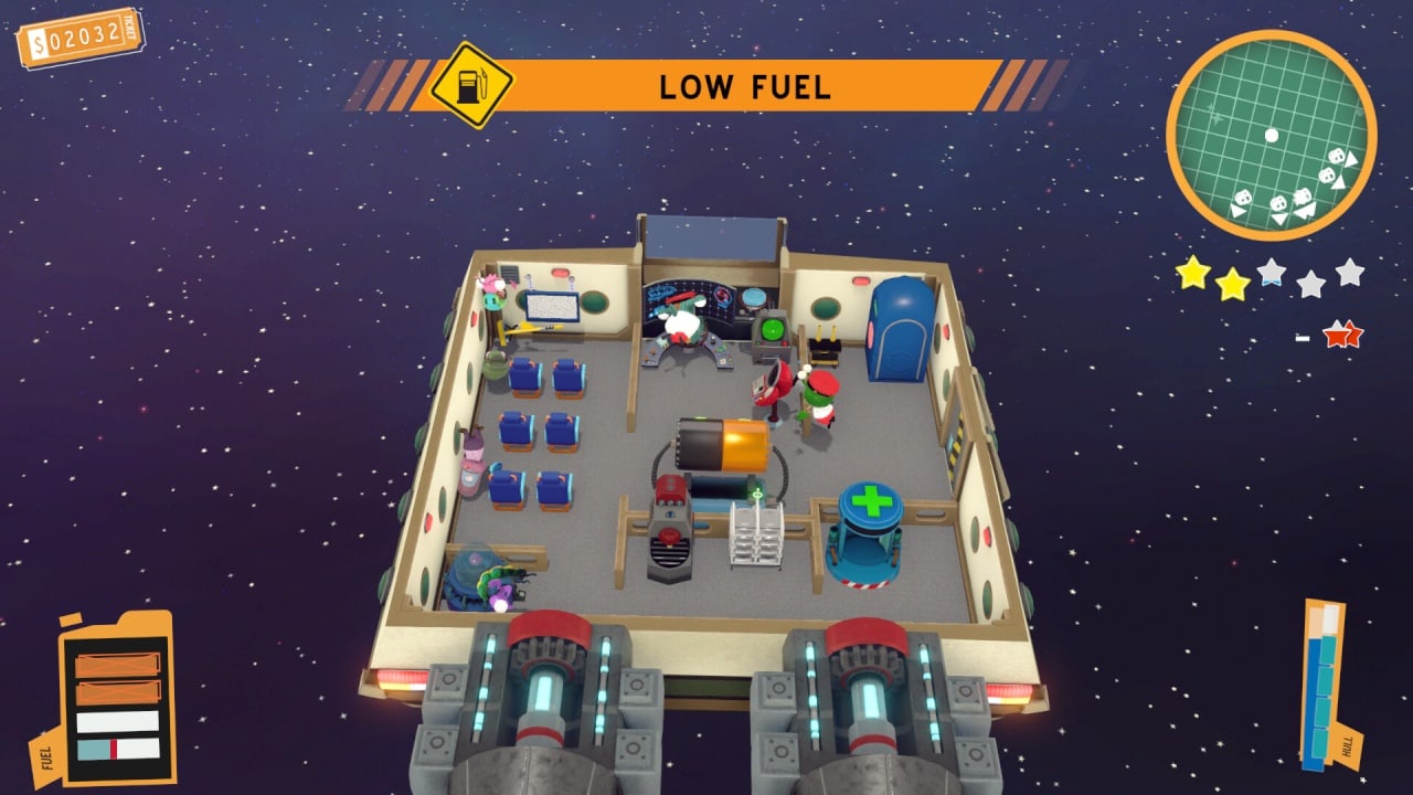На космических объектах оборудование может поломаться. Для этого требуется починить и нанять специальных сотрудников. Персонажи столкнуться с потерей гравитацией, пилотированием 101, повреждением корпуса и космическими опасностями. Перемещаясь по огромному пространству, геймер наткнётся на астероиды и другие опасности. По ходу прохождения игрок открывает доступ к новым кораблям, улучшениям, экипажу, персонажам и элементами для прокачки звездолета. Пользователь может освоить множество механик, как пилотирование, приготовление пищи, взлом, танцы, ремонт, уборки и прочими.
