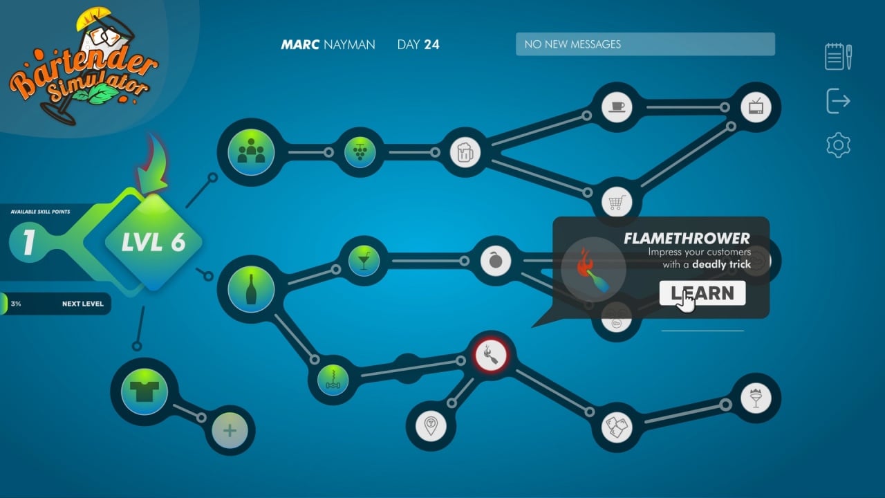 Необходимо всячески контактировать с гостями. Кто знает, может красотка оставит свой номер? Или плеснет в лицо коктейль, если найдет поведение неподобающим. Можно жонглиовать бутылкам, шейкерами и стаканами, параллельно зажигая огонь. Настоящее шоу всегда высоко ценится посетителями. В Bartender Simulator требуется завоевывать репутацию и признание, чтобы привлекать больше инвесторов и клиентов. Позволяется заниматься дизайном интерьеров, покупая стулья, столы, диваны, лампы, барную стойку и различные аксессуары.