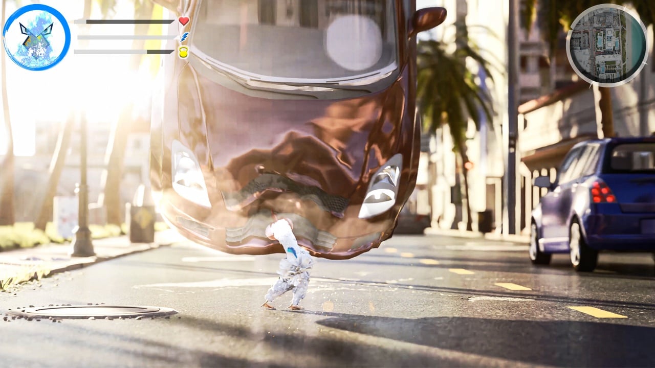 Игровой процесс Techno Chicken (ft. J.Geco) выделяется психоделичностью. Курица обладает огромной силой. Можно клювом схватить человека и начать гасить его об асфальт. Действия разворачиваются под драйвовый техно-бит, вызывающий желание крушить и ломать все вокруг. Задача состоит в уничтожении, ломании и крушении всего и вся. На ходу остановить машину? Легко! При помощи клюва и лап позволяется устроить настоящий дестрой!