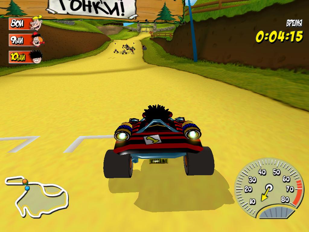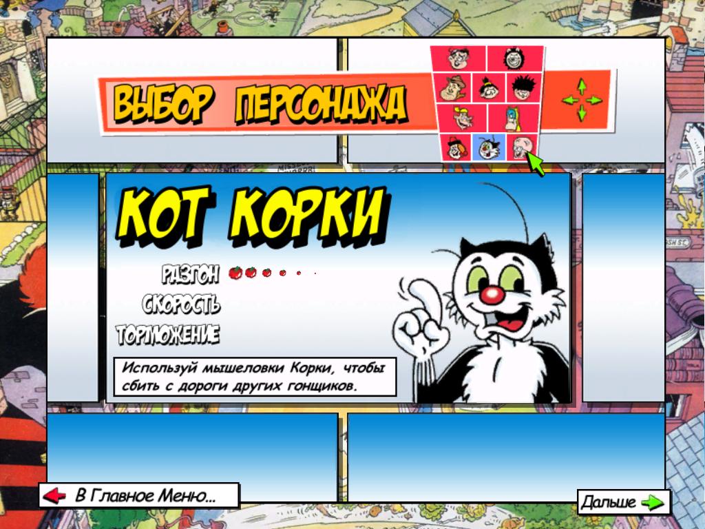 Большинство героев перекочевали со страниц американских Веселых Картинок. Десяти водителям предстоит посоревноваться за звание лучших на самых невероятных трассах, безумие которых не уступает гоночными болидам. Используйте оружие, суперудары и различные ловушки, чтобы замедлить оппонента. Атмосфера настоящего безумие гарантируется! Жмите на газ и да победит сильнейший!