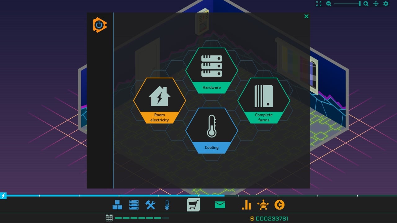 Протагонист способен создать собственную криптовалюту и раскрутить её, постепенно поднимая собственный капитал. Для заработка предоставлена небольшая комната. Внутри пользователь установит небольшие майнинг-фермы, созданные при помощи разнообразных видеокарт, прототипы которых взяты из реальности. Постепенно доходы будут повышаться, а на заработанные средства покупаются дополнительные элементы, помогающие добывать больше биткоинов и других валют.