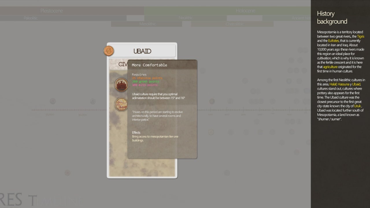 Пользователь будет создавать собственный мир или побывает в роли правителя государства. Понадобится развивать цивилизации, исследовать новые технологии и следовать нелинейным путем. Каждая фракция обладает оригинальной статистикой и дополнительными функциями. Ландшафт создавался при помощи знатоков географии. Это помогло воссоздать реалистичную местность, влияющую на сражения и строительство городов.