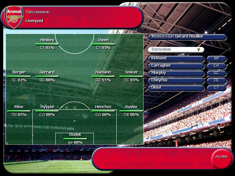 Успех зависит лишь от умения руководить всеми процессами. Работайте со своими подопечными, в индивидуальном порядке общаясь с игроками. Подбирайте спортсменов, тренируйте их и включайте в основной состав тех футболистов, которые на ваш взгляд способны привести Арсенал к победе. Следите за трансферами и юниорами, чтобы пригласить новоиспеченных бойцов и влить свежую кровь в состав. Действует система подсказок, которая помогает новичкам разобраться со всеми тонкостями управления.