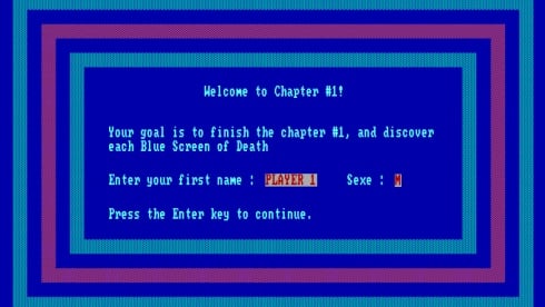 Пользователь отправляется в путешествие во времени и примет участие в трех странных приключениях. Предстоит добраться до конца истории, пройдя через множественные преграды и различные головоломки. Геймплей представлен в виде синего двумерного экрана, на котором создается локация, либо появляются диалоговые вставки. Чтобы добраться до концовки, геймеру потребуется игнорировать синий экран смерти и другие ошибки, способные возникнуть при путешествии.Особенности Blue Screen Adventures: