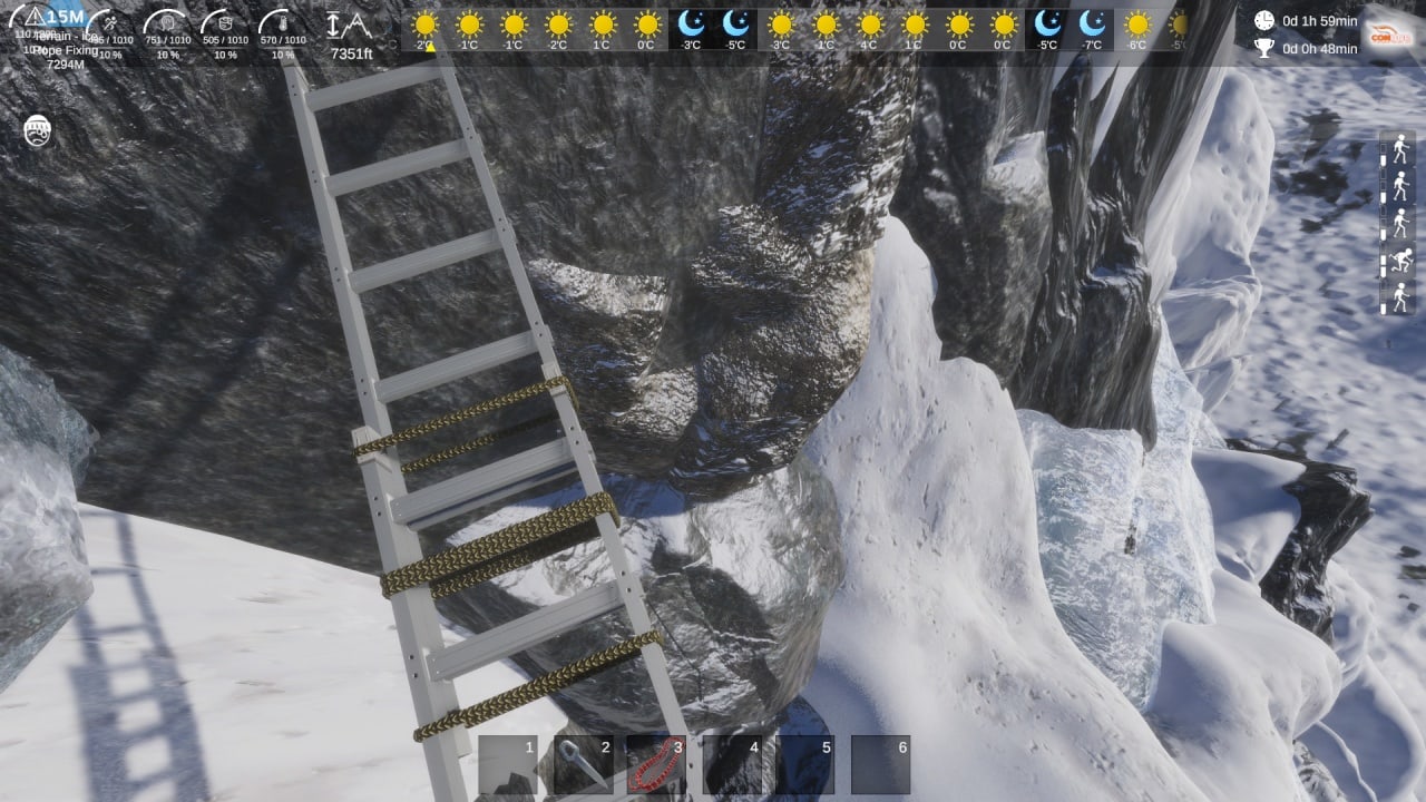 Взбираясь на гору, необходимо укреплять канаты, использовать альпинистские кошки, карабины, ледорубы и т.д. Стоит опасаться метелей и лавин. Перед тем, как отправиться в путь, рекомендуется изучить гору и обрисовать свой путь. В Climber: Sky is the Limit важно уметь определять, в какое время суток выступать, а когда лучше переждать, увеличивая шансы на подъем.
