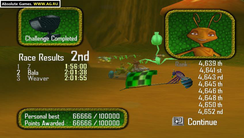 Antz Extreme Racing RUS Полная версия Последняя Дата выхода 2002 Разработчик Supersonic Software Жанр Гонки, Аркады Обновлено 26 января 2025, 07:58 Список изменений Antz Extreme Racing предлагает погрузиться в мир беспощадных спортивных соревнований. Однако состязания будут не простыми, ведь главными участниками выступают...насекомые. Пользователю предлагается один из шести персонажей на выбор, каждый из которых обладает уникальными характеристиками. От базовой скорости, силы, маневренности будет зависеть окончательный результат. Главная цель Antz: Муравьиная Олимпиада - скоростные гонки, призванные установить факт существования настоящего рая для букашек под названием Insectopia. Ради осуществления важнейшей цели объединились представители всех племен. Им предстоит преодолеть опаснейшие и сложнейшие маршруты, полные преград и препятствий. В качестве транспортных средств будут использоваться вовсе не традиционные гоночные болиды. Крошкам больше подойдут ореховые скорлупки, консервные банки и даже специально обученные жуки, способные развивать сверхскорость по меркам муравьев и собратьев - аж до 1 километра в час! Заезды не такие безобидные, как может показаться. В борьбе за победу невозможно перед чем-то остановиться. Для устранения соперников стоит применять многочисленные плюшки. Среди них - гвозди, патроны и даже масляные взрывчатки. Скачать торрент Скриншоты Скачать Antz Extreme Racing Тип релиза Пиратка (Таблетка: Не Требуется) Версия (Полная) Последняя Размер 482.5 МБ Интерфейс Русский Озвучка Английская Установка: Скачать .torrent торрент файл Скачать БЕЗ торрента прямая ссылка через uTorria Системные требования ОС: Windows XP, 7, 8, 10 Процессор: Pentium 300 MHz Оперативная память: 64 MB Видеокарта: 16 MB Место на диске: 300 МБ Казуальная, Смешная, Юмор, Для всей семьи, Ретро, Олдскул