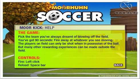Морхухн: Эпидемия футбола RUS Полная версия Последняя Дата выхода 2006 Разработчик Phenomedia Publishing Жанр Шутеры, Аркады Обновлено 26 января 2025, 07:59 Список изменений Морхухн: Эпидемия футбола знакомит пользователя с новым опасным вирусом. Теперь предстоит опасаться не пресловутого орнитоза или птичьего гриппа, переносчиками которых могут быть легендарные куропатки. Настало время футбольной лихорадки, которой не смогут противостоять даже обладатели самого мощного иммунитета. Однако, стоит отметить, что классическим симулятором игра не является. Перед игроком ставятся другие, но не менее увлекательные задачи.Режимы Морхухн: Эпидемия футбола включают: Игру навылет. В распоряжении геймера 11 команд, из которых нужно выбрать одну. Только стоит сразу понимать, что не для участия в спортивных соревнованиях. Главная задача не меняется - необходимо безудержно палить по пернатым. Требуется соблюдать единственное условие - в момент выстрела птица должна вести мяч. Так как четкой стратегией птичье объединение не обладает, определить, кто будет следующей жертвой практически невозможно. Помимо бегающих по полю крылатых нельзя забывать о случайно пролетающих над полем. Выполняя миссию, нужно скрываться от надоедливых фотокоров, следящих за каждым шагом игрока. Если снимок деятельности окажется в их руках, не избежать штрафных очков. Золотую лапу. Этот вариант предполагает управление одной из птиц. На нее одновременно направляются угловые удары с обеих сторон поля. Перед футболистом - пустые ворота. Чем больше эффектных голов будет забито за 90 секунд в таких условиях, тем внушительнее станет сумма начисленных баллов. Скачать торрент Скриншоты Показать больше Скачать Морхухн: Эпидемия футбола Тип релиза Лицензия (Таблетка: Не Требуется) Версия (Полная) Последняя Размер 72.6 МБ Интерфейс Русский Озвучка Отсутствует Установка: Скачать .torrent торрент файл Скачать БЕЗ торрента прямая ссылка через uTorria Системные требования ОС: Windows XP, 7, 8, 10 Процессор: Pentium 4 Оперативная память: 256 MB Видеокарта: 32 MB Место на диске: 35 МБ Казуальная, Смешная, Юмор, Классика, Короткая, Для всей семьи, Рисованная графика, Ретро, Олдскул