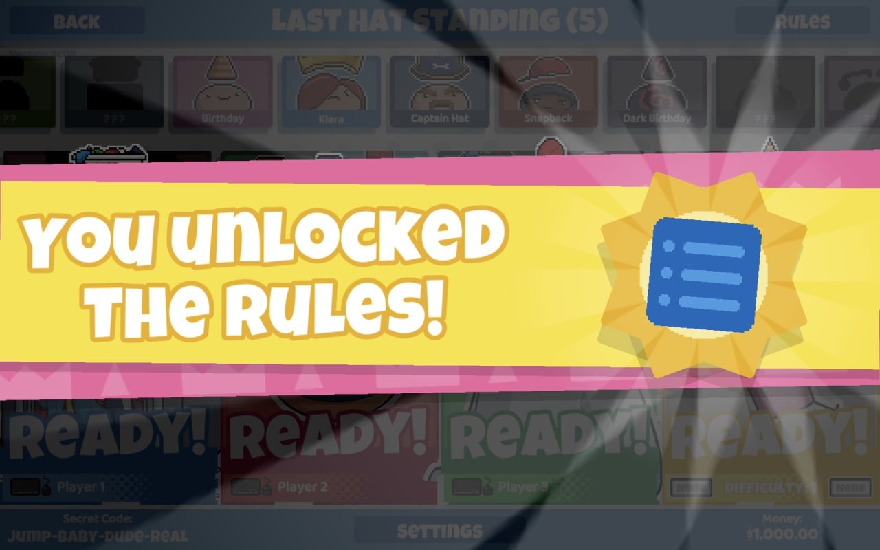 King of the Hat - соревновательный платформер, созданный для вечеринок или для повседневного веселья. Возьмите под свое управление милых пиксельных персонажей, сражающихся друг против друга при помощи кидания шляп. Каждый герой имеет уникальный внешний вид и индивидуальную форму шапки. Можно прыгать на голову своему сопернику, тем самым нанося урон его головному убору.