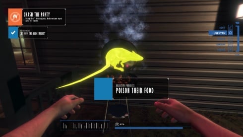 Тренируйте навыки при помощи различных второстепенных заданий. Нанесите на нож кровь и выкиньте его в гостинной. Закиньте тухлые яйца за мебель, помочитесь в бассейн, подкиньте в еду тараканов и просто превратите вечеринку в сущий ад. Взламывайте замки, делайте вонючие ловушку и многое другое. Можно развивать дерево талантов, предлагающее действовать более скрытно или быстро.