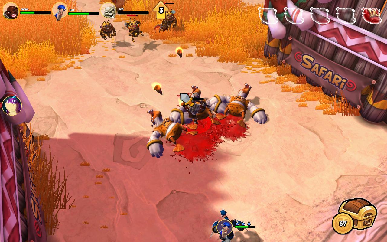 Dungeonland Полная версия Последняя Дата выхода 2013 Разработчик Critical Studio Жанр Экшены, Приключения, RPG, Инди, Аркады Обновлено 26 января 2025, 08:04 Список изменений Dungeonland переносит пользователя в мир, где хозяин подземелий Маэстро соорудил парк развлечений. Но вместо аттракционов там обитают драконы розового цвета, воины, использующие для перемещения динозавров, огромные зайцы и даже птеродактили. Последние иногда справляют нужду на плечи персонажей. Цель у героев, попавших в это место, одна: выжить и получить как можно больше золота. В Данженлэнд геймер может управлять магом, разбойником или воином. Первый атакует огненными и ледяными заклинаниями, второй метает кинжалы, а третий сбивает оппонентов с ног тяжелым молотом. Еще аватар может выпить зелье и получить специальный скил: исцеление, неуязвимость или способность метать бомбы. Помимо этого, персонажи будут использовать элементы окружающего мира вроде контейнеров или почтовых ящиков. Можно даже запустить в оппонента овцой. Животные серого и красного цветов в процессе взрываются, а на месте, где стоял зеленый барашек, получится подлечиться. Еще на локациях присутствуют червяки, мини-боссы и боссы. При однопользовательском прохождении все герои разделяют общее число здоровья. Когда один из союзников погибает, геймер должен успеть за 10 секунд вернуть его в строй. В противном случае персонаж воскреснет сам, использовав одну из жизней. При этом пользователь играет только за одного бойца из команды, остальных контролирует ИИ. Дополнительные сердечки вместе с едой и драгоценностями даются за убийство врагов. Еще одна особенность тайтла заключается в возможности поуправлять злодеем. Скачать торрент Скриншоты Показать больше Видео из игры Скачать Dungeonland Тип релиза Лицензия (Таблетка: Присутствует) Версия (Полная) Последняя Размер 1.11 ГБ Интерфейс Английский Озвучка Английская Установка: Скачать .torrent торрент файл Скачать БЕЗ торрента прямая ссылка через uTorria Системные требования ОС: Windows XP, 7, 8, 10 Процессор: Dual Core 2.6GHz+ Оперативная память: 4 GB Видеокарта: Nvidia GeForce 8000+ / AMD Radeon HD 2000+ Место на диске: 2.7 ГБ Слэшер, Вид сверху, Смешная, Юмор, Средневековье, Затягивающая, Реиграбельность, Цветастая, Кастомизация персонажа, Процедурная генерация, Beat 'em up