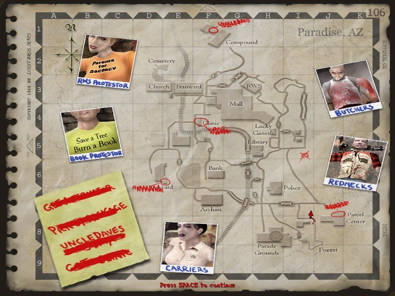 Postal X: 10th Anniversary Collectors Edition Полная версия Последняя Дата выхода 2007 Разработчик RWS, Inc Жанр Экшены, Шутеры, Аркады Обновлено 26 января 2025, 08:08 Список изменений Postal X: 10th Anniversary Collectors Edition собрал в себе все официальные модификации ко второй части, бонусные материалы и оригинальную версию. Помимо игр, присутствуют информационные ролики. В них рассказывают о создании проекта. Главным героем по-прежнему остается Чувак вместе со своим псом Чампом.Особенности Юбилейного издания Постал Х: В игре множество сцен насилия, крови и прочей жестокости. Черный юмор и другие непотребства стали визитной карточкой персонажа. Геймплей разделен на 7 глав. Каждая из них представляет соответствующий день недели. Утром Чувак просыпается и начинает выполнять повседневные дела, которые внезапно превращаются в катастрофу. Поход в магазин заканчивается перестрелкой, а в банке могут напасть грабители. Разработчики предлагают арсенал из 10-ти видов оружия. Среди них ножи и другое холодное орудие для ближнего боя. А также несколько вариантов огнестрельного снаряжения. В некоторых вариациях в битве можно использовать подручные предметы. К примеру, глушитель заменяется котом. Не самая гуманная, но зрелищная картина. В сборник входят: Classic and Uncut, Share the Pain, Apocalypse Weekend, A Very Postal Christmas, A Week in Paradise, Eternal Damnation. Последние две были созданы поклонниками, и не могли остаться без внимания компании. Среди дополнений фанаты найдут комиксы, саундтреки и превью-ролик третьего эпизода. В мультиплеере добавлены новые карты. Они будут разнообразны и наполнены интересными локациями. На них предстоит встретиться с опасными заданиями, которые необходимо решить, чтобы успешно перейти к следующей миссии. Скачать торрент Скриншоты Показать больше Скачать Postal X: 10th Anniversary Collectors Edition Тип релиза Лицензия (Таблетка: Не Требуется) Версия (Полная) Последняя Размер 3.72 ГБ Интерфейс Английский Озвучка Английская Доп. информация: Установка: Скачать .torrent торрент файл Скачать БЕЗ торрента прямая ссылка через uTorria Альтернативные раздачи Торренты Лицензия (Таблетка: Присутствует) n/a 7.4 ГБ Скачать Системные требования ОС: Windows XP, 7, 8, 10 Процессор: 1.5 GHz Оперативная память: 384 MB Видеокарта: 64 MB Место на диске: 7.2 ГБ От первого лица, Шутер от первого лица, Смешная, Юмор, Классика, Кровь, Мясо, Культовая классика, Чёрный юмор, Ретро