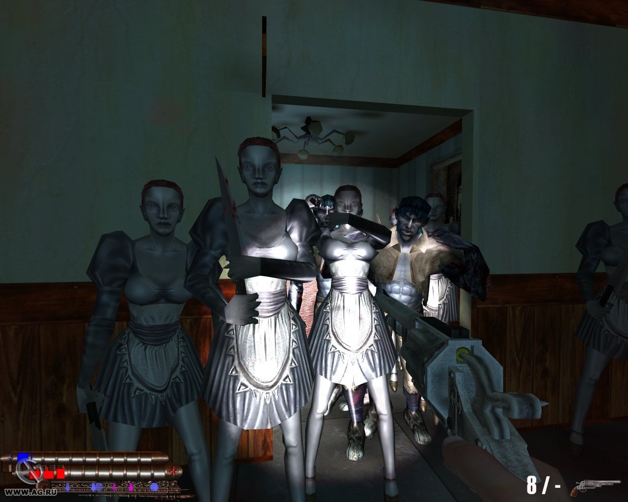 Dracula: Зов крови RUS Полная версия Последняя Дата выхода 2006 Разработчик Wolfgroup Жанр Шутеры Обновлено 26 января 2025, 08:08 Список изменений Dracula: Зов крови переносит в великую и элегантную эпоху 19-го века. Политические разногласия, светские балы. Все смешалось между собой. Великие короли и вельможи пытаются разделить власть между собой. Однако появляется тот, перед кем каждый готов склонить голову. Он истинный правитель всей Европы. Граф Дракула наводит ужас только одним присутствием. Веками он набирался сил и растил свою армию. Теперь вампиры готовы открыто заявить о себе. Все чаще стали находить обескровленные трупы с характерными следами укусов. Один из рыцарей давнего рода не хочет закрывать глаза на эти преступления и готов в одиночку встретиться со смертью и раскрыть это страшное дело. По большей части в Dracula: The Days of Gore геймплей состоит из брожения по комнатам и изучением их. Иногда локациями будут узкие улочки. Все это нужно исследовать, чтобы найти заветные кристаллы. Для чего они нужны предыстория умалчивает. Но, чтобы перейти на следующий уровень, нужно собрать указанное количество камней. Всего предусмотрено 11 таких миссий. Попутно предстоит сражаться с врагами. Они подкрадываются бесшумно. К слову, это не всегда будут уродливые монстры. Это могут быть обычные девушки, которые попытаются убить героя ножом. Для защиты предложен арсенал оружия. В него входят пистолет, пулемет, дробовик и арбалет с колом. Чаще всего пригодится последних два варианта. Ведь большая часть противников будут вампирами. С ними можно сразится в рукопашном бою или же обстреливать из далека. К тому же, при удачном использовании деревянного орудия, будет пополняться здоровье и энергия протагониста. Скачать торрент Скриншоты Показать больше Видео из игры Скачать Dracula: Зов крови Тип релиза Лицензия (Таблетка: Не Требуется) Версия (Полная) Последняя Размер 636 МБ Интерфейс Русский Озвучка Русская Установка: Скачать .torrent торрент файл Скачать БЕЗ торрента прямая ссылка через uTorria Системные требования ОС: Windows XP, 7, 8, 10 Процессор: 1.2 GHz Оперативная память: 256 MB Видеокарта: 64 MB Место на диске: 750 МБ Хорроры, От первого лица, Шутер от первого лица, Мрачная, Вампиры, Кровь, Мясо, Олдскул