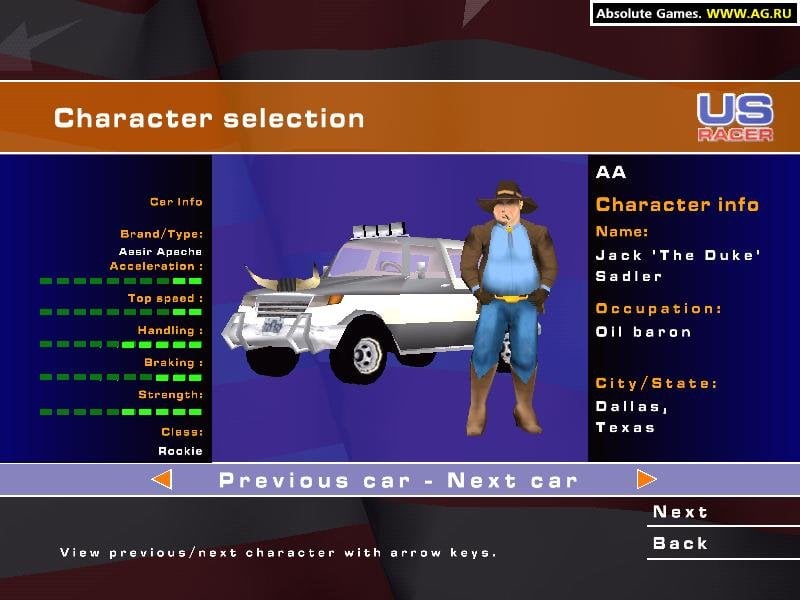 US Racer - гоночная аркада с элементами симулятора, предлагающая прокатиться по детализированному миру на разнообразных легковых авто. Дороги пролегают через самые крупные мегаполисы Соединенных Штатов. Помчитесь по Лас-Вегасу, Нью-Йорку, Лос-Анджелесу, Чикаго, Хьюстону, Вашингтону и Майами и другим трассам США. Любой из городов можно посещать в произвольном порядке.