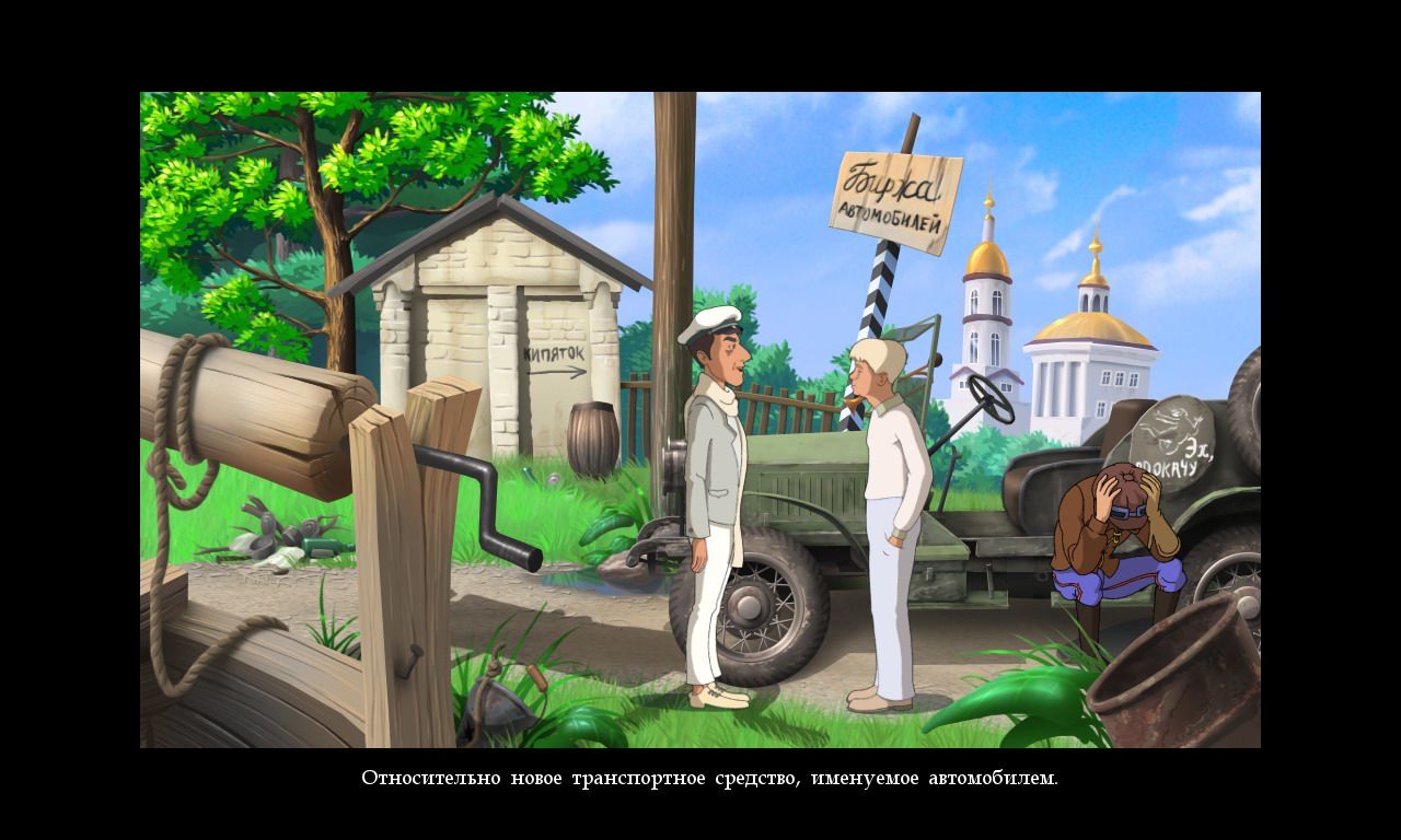 Золотой телёнок (игра) RUS Полная версия Последняя Дата выхода 2006 Разработчик RootFix Entertainment Жанр Приключения Обновлено 26 января 2025, 08:13 Список изменений Золотой телёнок (игра) создана по мотивам знаменитой книги Ильи Ильфа и Евгения Петрова. События начинают разворачиваться в городе Арбатов. Первой локацией станет Исполком. Чтобы воплотить замысел с аферой и притвориться сыном лейтенанта Шмидта, игроку предстоит пройти тест. Если количество правильных ответов будет достаточным, то можно будет идти дальше. Так многие сцены из кинофильма будут представлены в виде задач, квестов и головоломок. Чтобы закрасить надпись на автомобиле, герою предстоит совершить ряд действий и применить смекалку. Помогать ему будет давний друг Шура Балаганов, профессиональный водитель Адам Казимирович и человек без паспорта Михаил Паниковский. Промежуточные сцены или некоторые диалоги представлены бумажными страницами с текстом и иллюстрациями. Также в ней объясняются последующие задания. Золотой телёнок (игра) практически полностью повторяет сюжет оригинала. Исключением становятся моменты, которые разработчики задумали как задания. Также несколько отличается внешний вид персонажей. Но они остались весьма узнаваемыми. Все реплики были сохранены без изменений. Это сохраняет юмор и атмосферу, свойственные произведению. Графика выполнена хорошо. Объекты и декорации прорисованы без изъянов. Цвета яркие и насыщенные. Анимация напоминает мультяшную. Компаньоны объезжают все места, описанные в книге. Локациями будут: поле, улицы Черноморска, газоубежище и прочее. Помимо основных персонажей встречаются другие знакомые лица. Среди них Зося Синицкая, товарищ Супругов, Егор Скумбриевич и другие. Одни из них играют важную роль в игровом процессе, другие же просто развлекают геймера. Скачать торрент Скриншоты Показать больше Видео из игры Скачать Золотой телёнок (игра) Тип релиза Лицензия (Таблетка: Присутствует) Версия (Полная) Последняя Размер 1.3 ГБ Интерфейс Русский Озвучка Русская Установка: Скачать .torrent торрент файл Скачать БЕЗ торрента прямая ссылка через uTorria Системные требования ОС: Windows XP, 7, 8, 10 Процессор: 1 GHz Оперативная память: 256 MB Видеокарта: 64 MB Место на диске: 1.4 ГБ Головоломка, Игры в 2D, Point and click, Вид сбоку, Смешная, Юмор, Затягивающая, Поиск предметов, Цветастая, Рисованная графика, Ретро, Олдскул