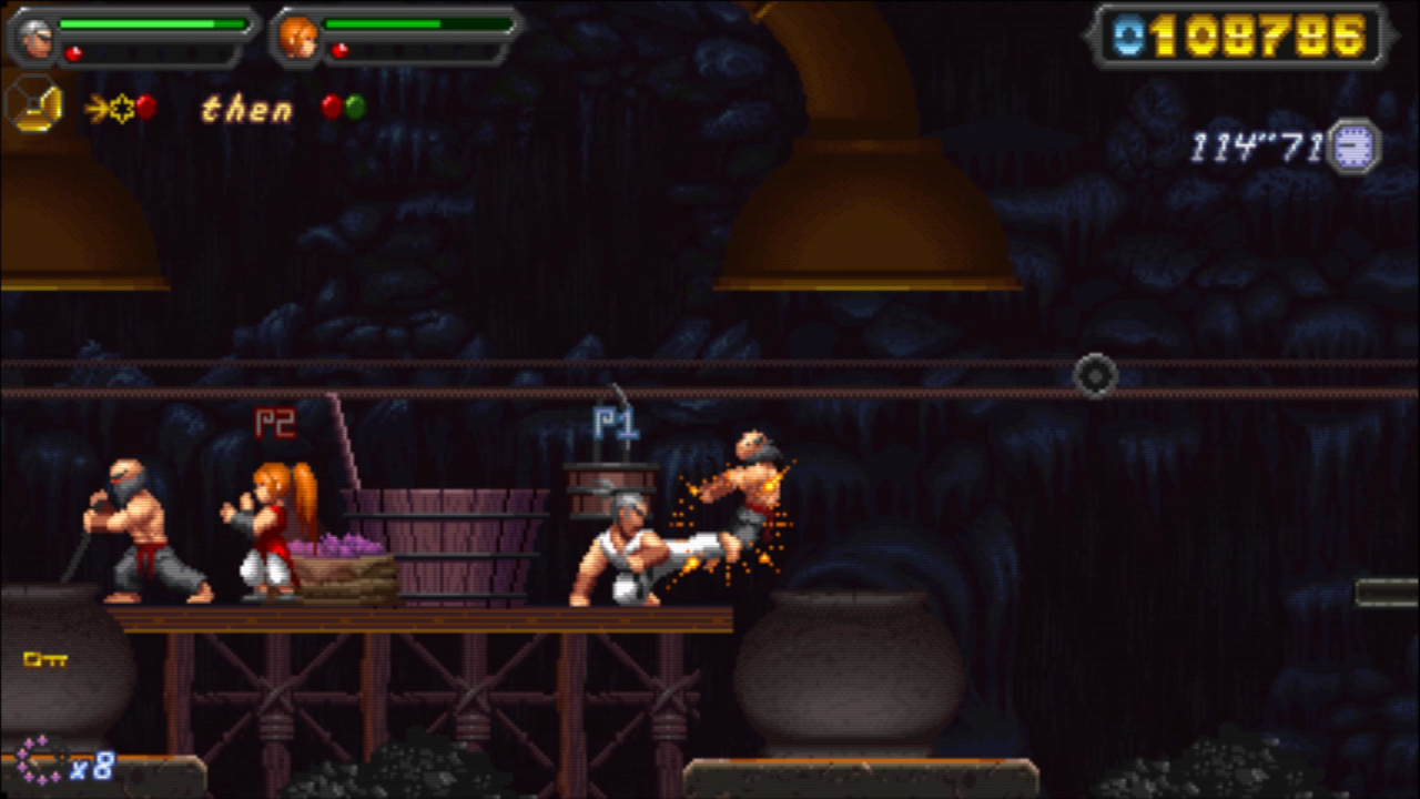 На пути центральные персонажи столкнутся с умелыми ниндзя, демонами и другими смертоносными существами. В приключенческом боевике постепенно открываются дополнительные способности и побочные элементы истории. Каждый юнит обладает собственными движениями и вооружением. Юзер воспользуется посохом бо, нунчаками и мечом. Специальные способности и комбинации помогут вмиг устранить оппонента, заблокировать удар или нанести быструю серию атак.Ключевые функции Okinawa Rush: