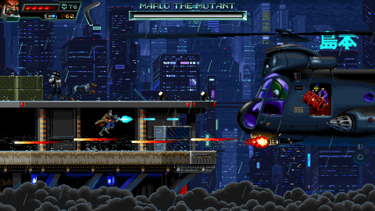 Кампания состоит из 20 уникальных уровней, где каждая локация пропитана неоном, граффити, грязными подворотнями, пейзажами в стиле 80-х и т.д. Среди вооружения представлены конфискуйте пулеметы, лазерные пушки, катаны, гранаты и множество других смертоносных стволов. Позволяется вступать в ближнюю конфронтацию. После каждого этапа ждет напряженный поединок с боссом.