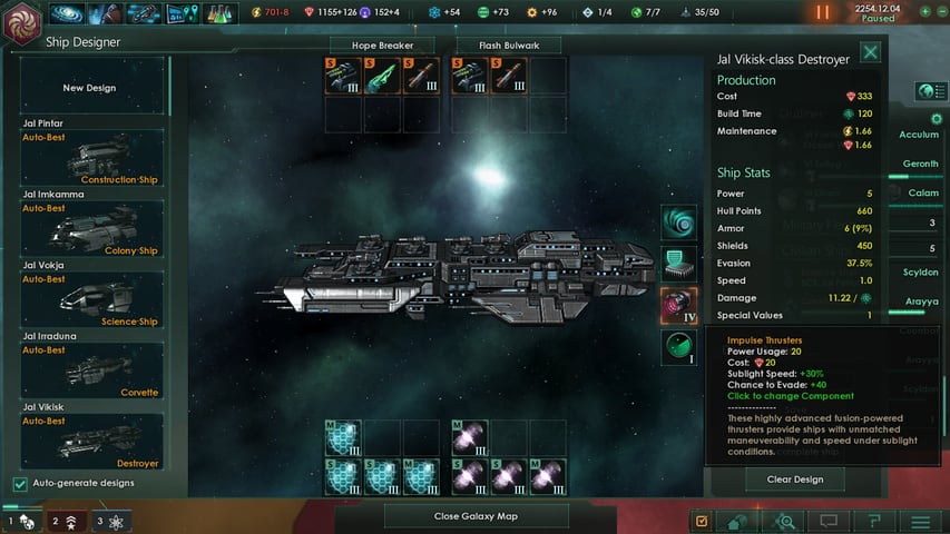 Можно конструировать шаттлы, заниматься археологическими раскопками, изучать аномалии и т.а. Политическая механика представлена внутренним и внешним развитием. Позволяется заключать договоры, создавать торговые точки, объявлять войну и т.п. Прокачка осуществляется за счет улучшения трех ветвей: общественной, физической и инженерной. Создавая флот, требуется строить как быстрые, так и массивные корабли, вступая в противостояние с противоборствующими империями.