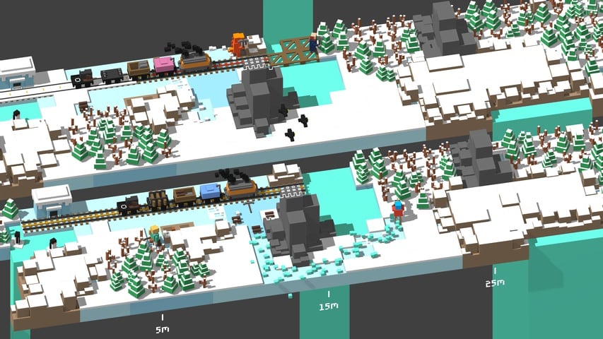 Необходимо собирать ресурсы, координировать свои действия и работать в команде, выстраивая дороги сообща. Важно, чтобы поезд все время двигался и не останавливался. Инструменты и ресурсы всегда ограничены, поэтому следует правильно обдумывать каждый свой шаг. Возможность бесплатной сетевой игры позволяет выстраивать правильное взаимодействие между участниками, чтобы составы все время передвигались по карте и никогда не сходили с намеченного маршрута. Карта состоит из 5 индивидуальных биомов. Каждая область предлагает собирать уникальные ресурсы.