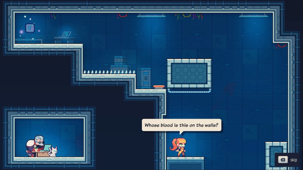 Прозвище героини - Санблейз. Она очень быстрая и молниеносная. Совершая рывок, требуется преодолевать пропасти, взрывчатки, шипы, дроны, электричество и множество других препятствий. Тренажер генерируется случайным образом. В Sunblaze рандомизируются помещения и задачи. Протагонистка может отталкиваться от стен, уворачиваться, высоко или далеко прыгать и т.п. Она вступает в напряженную схватку с лазерами, роботами и множеством других сильных врагов. Смерть - одна из важнейших механик приключения.