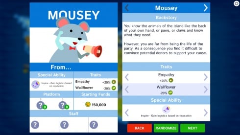 Political Animals v 0083 (12682) Новая версия Полная версия Последняя Дата выхода 2 ноя. 2016 Разработчик Squeaky Wheel Жанр Симуляторы, Стратегии, Инди Смешанные на основе 159 обзоров в Steam 66% Обновлено 26 января 2025, 11:46 Список изменений Political Animals переносит геймеров в странный мир, где места политических руководителей занимают животные. В центре внимания находятся коррумпированные крокодилы и меритократические мыши, между которыми и происходит борьба за власть. Пользователям же предлагается принять участие в предвыборной кампании и побороться за наивысшую должность в обществе, продвигая собственные идеи. Но следует быть осторожным, ведь коррупция сейчас буквально на каждом углу, и лучше всего работать чисто, не запятнав репутацию. На начальном этапе прохождения Political Animals можно выбрать как сторону, так и регион, в которому она будет базироваться. Каждая территория имеет склонность к тем или иным сферам деятельности (образование, строительство, бизнес, медицина и прочее), что отображается на схематической карте. Кроме того, есть опция выбора специального навыка. Например, крокодилы способны тратить часть расходов на то, чтобы останавливать скандалы. Уже во время основной части игрового процесса все будет строиться на случайных событиях. Некоторые будут настоящими, а часть - сфабрикованными. И в зависимости от того, как поведет себя персонаж, его репутация будет меняться. Абсолютно правильных решений нет, ведь хейтеры воспользуются даже самой маленькой оплошностью, чтобы раздуть скандал. Дабы заслужить доверие районов, которые изначально топят за другого кандидата, нужно заниматься их облагораживанием. Это касается развития инфраструктуры, устранения проблем на низших уровнях, а также постепенное повышение качества жизни. Но при этом важно следить за бюджетом, ведь если увлечься одной сферой, можно просто забыть о существовании других проблем. Скачать торрент Скриншоты Показать больше Видео из игры Скачать Political Animals Тип релиза Лицензия GOG (Таблетка: Не требуется) Версия v 0083 (12682) (Полная) Последняя Размер 180 МБ Интерфейс Английский Озвучка Отсутствует Скачать .torrent торрент файл Скачать БЕЗ торрента прямая ссылка через uTorria Альтернативные раздачи Прямые ссылки GOG версия (Без DRM) v 0083 180 МБ Показать Системные требования ОС: Windows 7, 8, 10 Процессор: 1.8 GHz Оперативная память: 2 ГБ Видеокарта: Nvidia Geforce 820M Место на диске: 1 ГБ Политический симулятор, Сатира, Пошаговая, Смешная, Менеджмент, Для всей семьи, Образование, Игры в 2D, Пошаговые стратегии, Управление ресурсами, Кастомизация персонажа, Пошаговая тактика