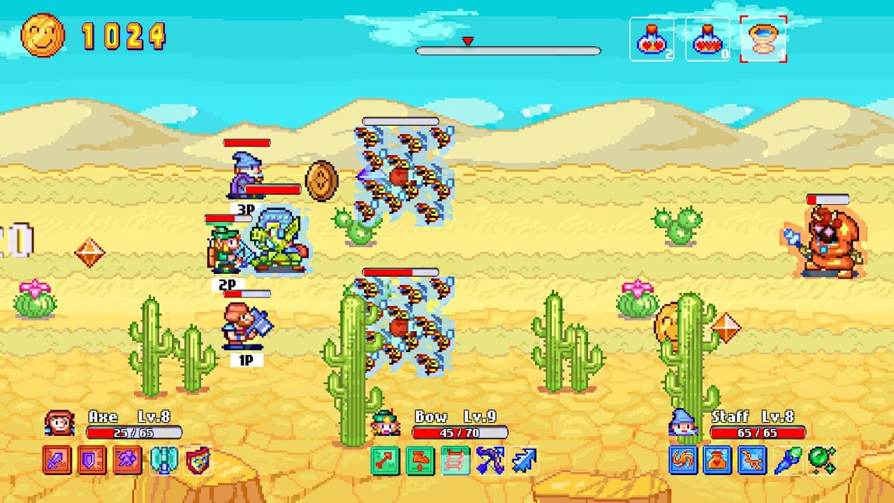 Axe, Bow and Staff - сайдскроллер, в который можно играть по интернету онлайн, скооперировавшись с другом или еще несколькими людьми, чтобы на пиратке бесплатно пройти многопользовательские режимы. Можно играть по сети, соревнуясь в различных режимах, либо же отправиться в одиночное приключение по фэнтезийному миру. Доступны дальнобойные и ближние атаки, а также представлена возможность использовать магию.