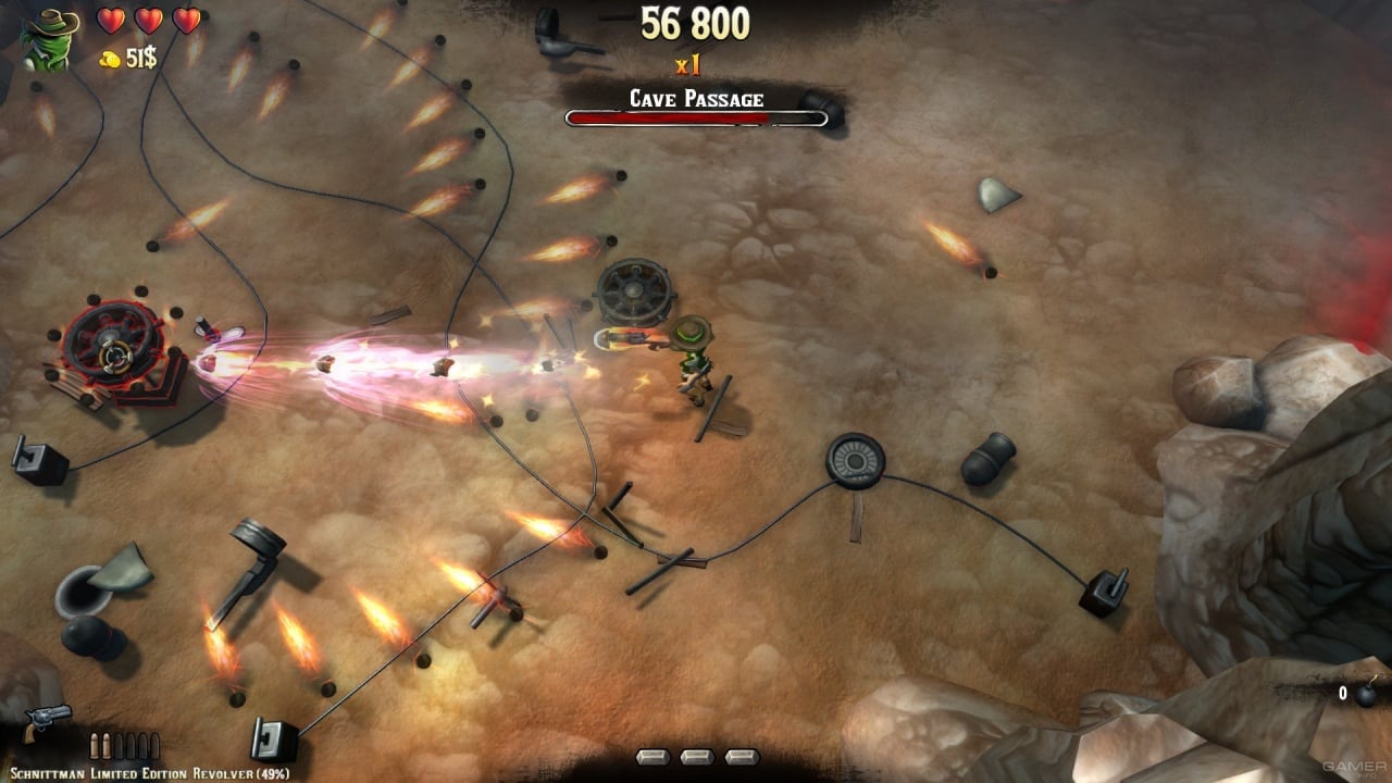 Каждому участнику доступно по 6 видов оружия. Между стволами позволяется переключаться в любой момент, разрабатывая уникальную тактику боя. Каждый вид оружия имеет свои уникальные свойства. Винтовки отличаются дальнобойностью и мощностью, однако долго перезаряжаются. Револьверы имеют скорострельность, однако действуют на ближнем расстоянии. Возможность бесплатной сетевой игры позволяет объединиться в кооперативе или сражаться между собой до четырех человек. Возможности приключения: