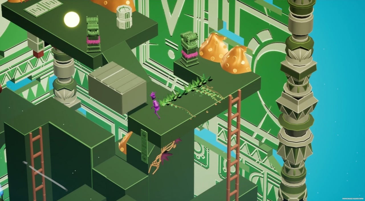 Каждая решенная задача предлагает подопечному пройти на этаж выше. Постепенно он забирается на новые этажи, а в конечном итоге необходимо попасть на вершину башни. Возможно, наверху герой столкнется с тем, ради чего он начал свое путешествие. Храм представлен в архитектурном стиле ацтеков. Внутри огромного здания пользователь сможет наблюдать за внутренними ручьями, высаженными деревьями, смертельными опасностями и ловушками.