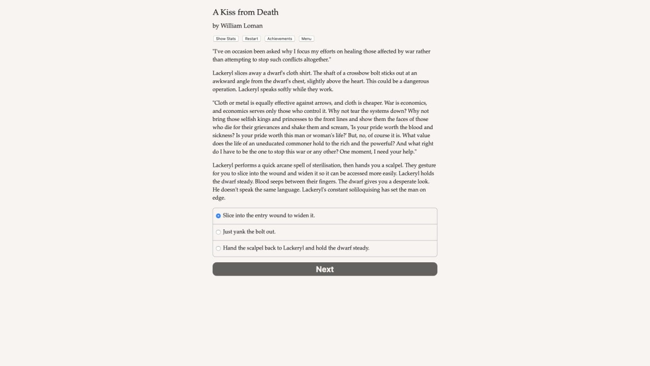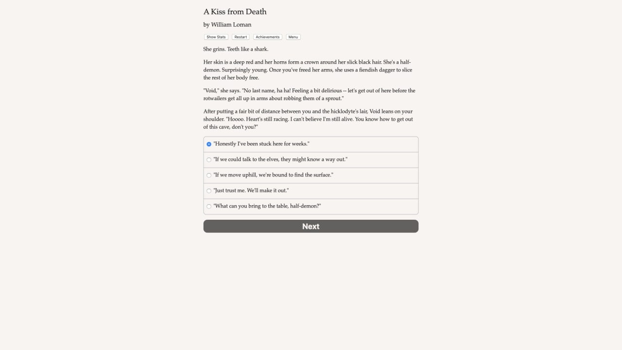 Будучи могущественным персонажем, пользователь способен сжигать замки, сочинять стихи, соблазнять смертныъ и прекращать войны. По мере продвижения божественное существо открывает доступ к новым темным силам. В мире можно сделать всё, что только пожелает геймер. Геймплей представлен в виде текстового прохождения с 350 000 словами и множественными диалогами. Текстовые вывески взаимосвязаны между собой, повествуют о текущих события в мире или жизни протагониста. Сотни выборов позволят написать собственную историю.