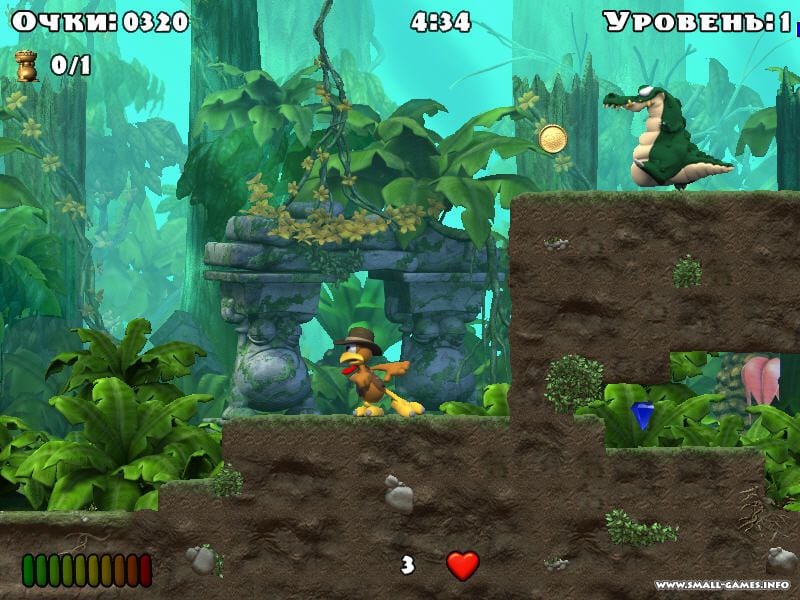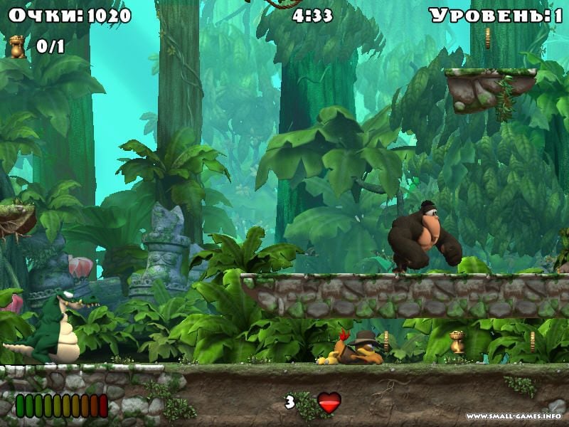 Каждого соперника можно устранять, прыгая им на головы, либо стреляя из игрушечного пистолетика. Прохождение представлено в виде платформера с боковой прокруткой. На областях разбросаны бонусы и боеприпасы. Местность включает множество платформ, расположенных так, чтобы открывался доступ к прыжкам на голову. Геймплей включает 21 уровень, на которых герой побывает в густых джунглях, полных опасностей. Присутствует 21 оппонент с разными способностями. Юзер способен применить геймпад для управления.