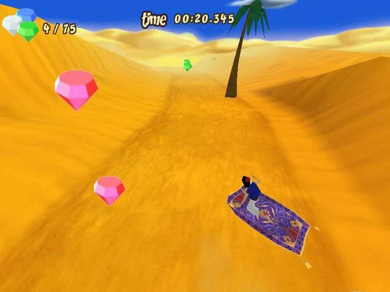 Aladdin’s Magic Carpet Racing — гоночная аркада, события которой разворачиваются в антураже Аграбы. Геймеру предстоит выбрать персонажа, среди которых доступны Аладдин и принцесса Жасмин, чтобы управлять волшебным ковром. Основная задача — победить в престижном турнире за Кубок Аграбы, состязаясь с разнообразными оппонентами. Игровой процесс заключается в перемещении по динамичным трекам, уклонении от преград и подборе усилений для ускорения или временной неуязвимости. Сюжетная линия соревнования ведет к решающему противостоянию со злым колдуном Джафаром.
