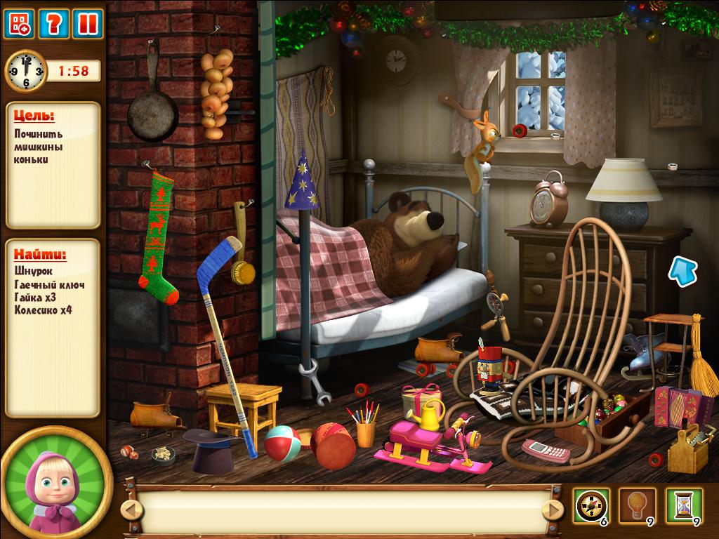 Маша решила, что его друг сам не справится, поэтому решила помочь, но это, как и всегда, добавило ещё больше проблем. С этими трудностями столкнется игрок, будет участвовать в них или помогать решать. В прохождении девочка соберется красивый букет, сделает конфеты, сварит варенье, добудет и украсить елку. Каждый уровень – отдельная мини-игра, где потребуется взаимодействовать с представленными на экране объектами, решать головоломки или выбирать действия.