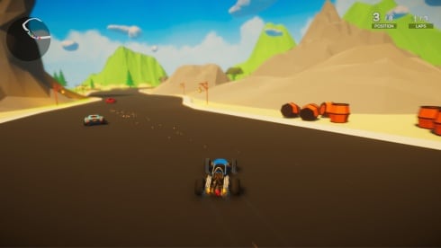 Это кольцевые гонки. На экране отображается количество оставшихся кругов, позиция юзера в заезде и мини-карта, предупреждающая о резких поворотах. Тачки способны разгоняться, тормозить, поворачивать влево и вправо, дрифтовать, подлетать на трамплинах. Ещё можно включать или выключать фары. А специальная кнопка возвращает транспорт на дорожное полотно в случае вылета в кювет. Менять ракурс камеры нельзя, не считая возможности посмотреть назад. По умолчанию установлен вид от третьего лица. Оружия и системы повреждений тут нет. Победа зависит только от скилла пользователя и искусственного интеллекта компьютерных соперников.