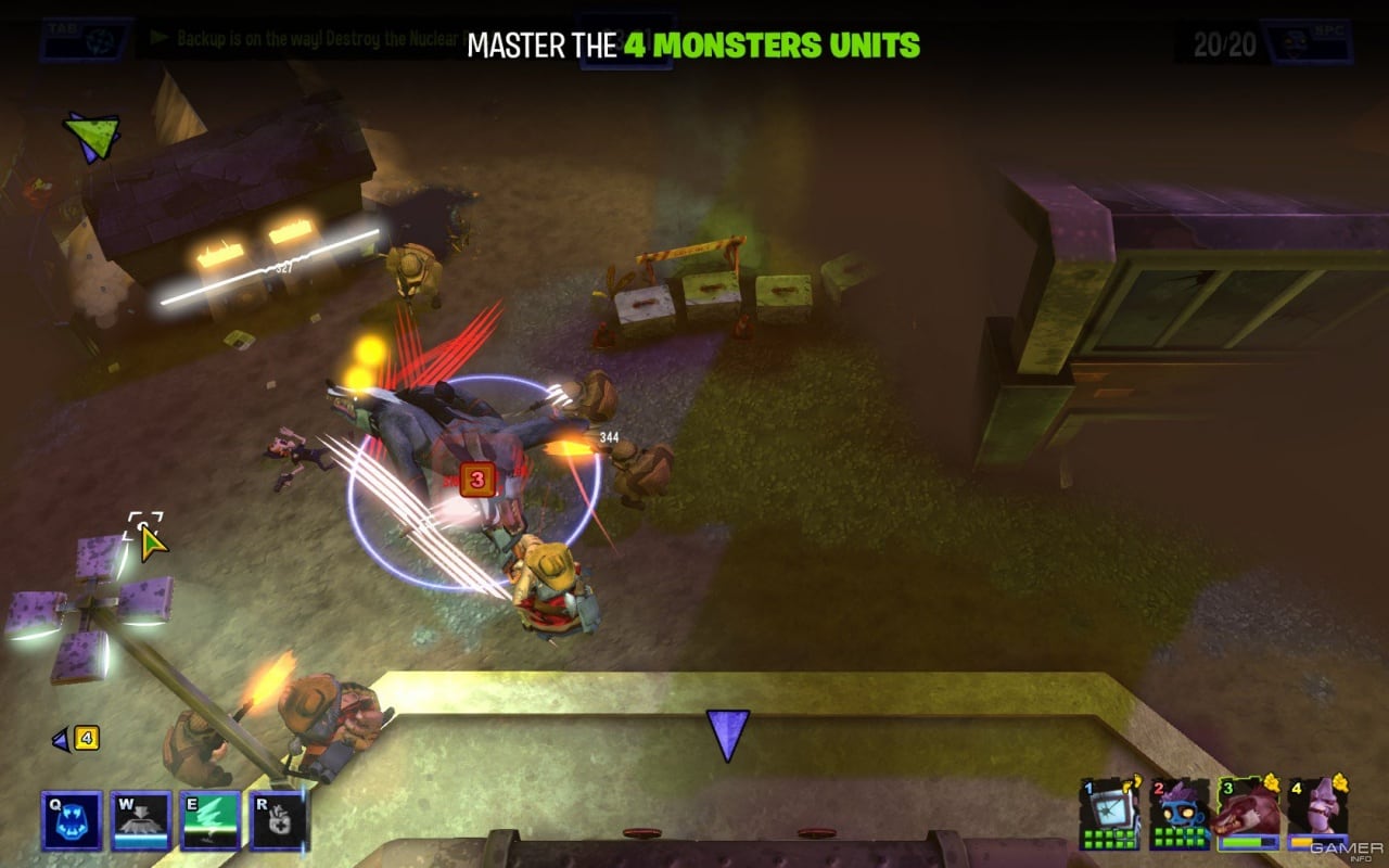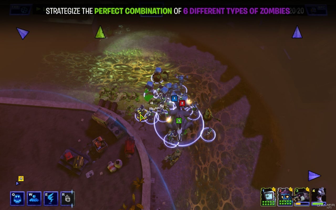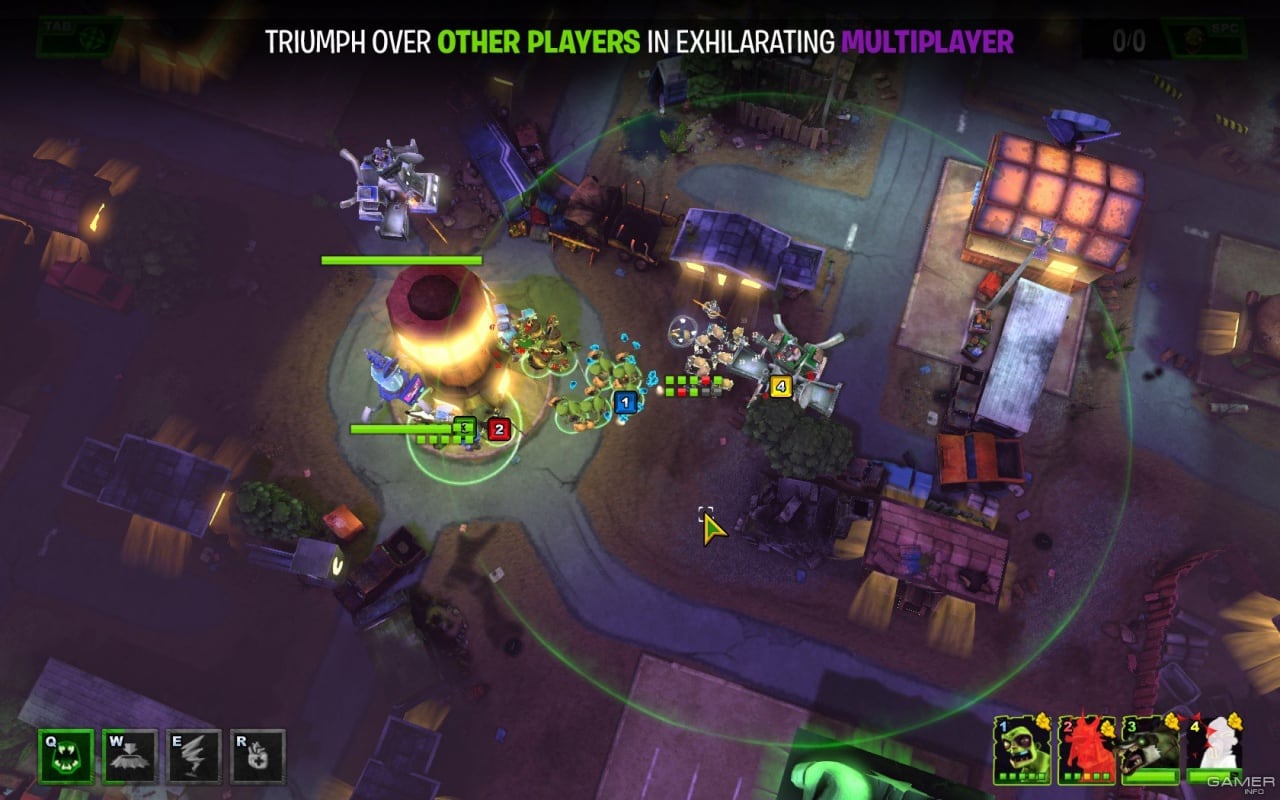 Схватки всегда происходят динамично, и сетевая игра не позволяет участникам сражения отвлечься ни на секунду. Важно вовремя менять вектор атаки и отдавать команду для штурма ключевых объектов противника. Как только зомби смогли добраться до вражеского здания, они начинают наносить ему урон, пока оно полностью не разрушится. При этом, далеко не все виды будут эффективно сокрушать постройки. Например, скидмарк обладает пассивным навыком к увеличению запаса здоровья при пожирании других тварей. Поэтому, чтобы набрать критическую массу, сначала необходимо устранить как можно больше юнитов. Возможность бесплатной сетевой игры открывает доступ к разным картам, поэтому у геймеров будет достаточно пространства для экспериментов и реализации задумок.