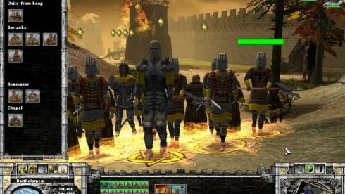 Строениями выступают казармы, кузня, дома каменщика, лесоруба, рудокопа и т.п. Денежный ресурс - золото. Его можно получить при помощи налогов или продажи пива в таверне. Отряды имеют три вида стоек: атакующую, защитную и маршевую. Солдаты могут бегать или ходить. Войска делятся на следопытов, пикинеров, рыцарей, аркебузиров, лучников и арбалетчиков. Также доступны Элитные воины, Монахи и прокаженные.