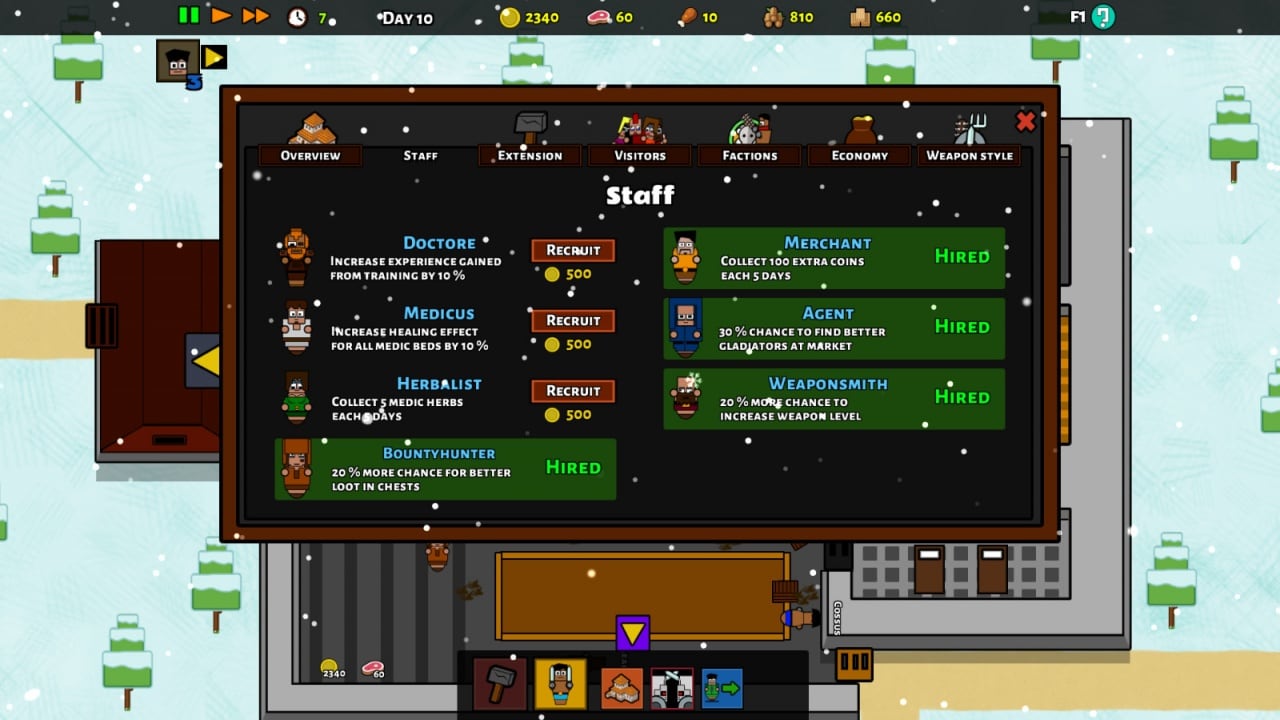 Gladiator School v Build 8818215 Новая версия Полная версия Последняя Дата выхода 9 ноя. 2017 Разработчик Raptor Claw Games Жанр Симуляторы, Стратегии, Инди, RPG, Экшены В основном положительные на основе 296 обзоров в Steam 70% Обновлено 26 января 2025, 00:13 Список изменений Gladiator School – это симулятор магната в Древнем Риме. Действия происходят в школе гладиаторов. Игрок начинает все с нуля. Унаследовав участок земли ему нужно отстроить здание и набрать новобранцев, организовать их тренировки и подготовить к серьезным боям. У каждого воина должно быть оружие. Им нужно обучить пользоваться. Помимо этого, необходимо следить за навыками ближнего боя. Все гладиаторы развиваются по-разному. У них есть свои недостатки и сильные стороны. Задача мастера подметить эти нюансы и правильно расставить приоритеты. За каждую победу на арене даются монеты. Их можно тратить на модернизацию умений воинов или на покупку оружия и специального оборудования. Также рекомендуется нанять профессионалов и бывших спортсменов, для улучшения качества тренировок. Размер приза меняется в зависимости от класса турнира. Однако и уровень противников зависит от этого. Для участия в самом престижном сражении, и помериться силами с чемпионом Колизея игрок должен набраться достаточно опыта и прокачать своих персонажей. Несмотря на то, что Gladiator School рассчитана только на одиночную кампанию, тут присутствует элемент соревнования. Есть другие школы и фракции, которые будут пытаться победить. Для найма рекрутов нужно просматривать общий рейтинг предложенных новичков. В нем представлены их достижения и потенциал. Скачать торрент Скриншоты Показать больше Видео из игры Скачать Gladiator School Тип релиза Пиратка (Таблетка: Не требуется) Версия v Build 8818215 (Полная) Последняя Размер 322.33 МБ Интерфейс Английский Озвучка Английская Скачать .torrent торрент файл Скачать БЕЗ торрента прямая ссылка через uTorria Системные требования ОС: Windows 7, 8, 10 Процессор: 1.2 GHz Оперативная память: 2 ГБ Видеокарта: DirectX 9 Compatible Место на диске: 400 МБ Менеджмент, Казуальная, Игры в 2D, Файтинги, Историческая, Сложная, Атмосферная, Отличный саундтрек, Смешная