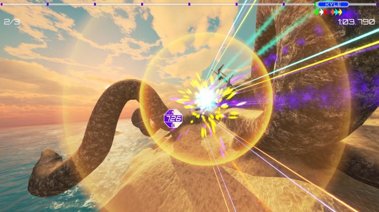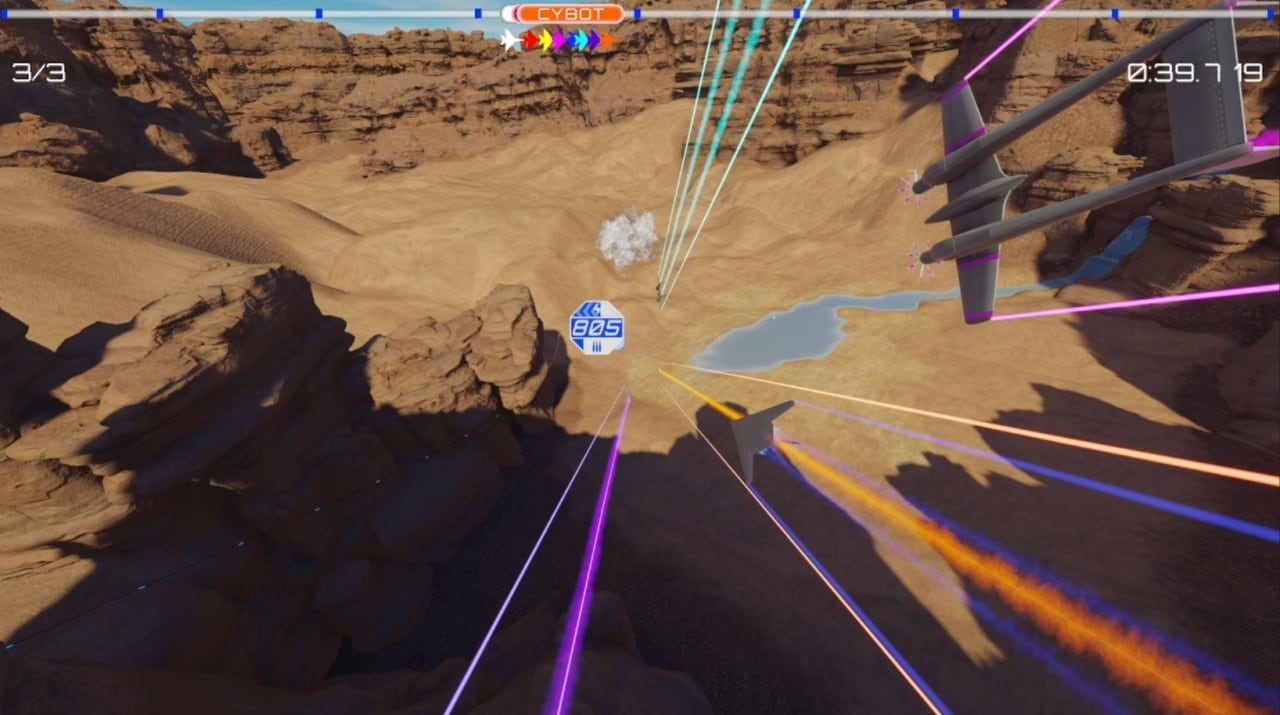 Инди-проект обладает нестандартными механиками. В нем нет кнопок газа и тормоза. Корабль движется сам, но во время поворотов и при попадании снарядов оппонентов он замедляется. Можно включить ненадолго ускорение, но оно расходует энергию. Чем она больше, тем выше скорость. Для восполнения её запаса надо сойти с той траектории полета, что позволяет сокращать путь и перейти на менее оптимальную дорожку. Эти линии отображаются на экране и помечаются разными цветами. Здесь нет коридорных треков. Полеты проводятся на открытой местности над горами, лесами, дорогами и реками. Лишь иногда встречаются туннели, но залетать в них необязательно. Участники сами выбирают себе наиболее подходящие маршруты. Не заблудиться помогает трекер.